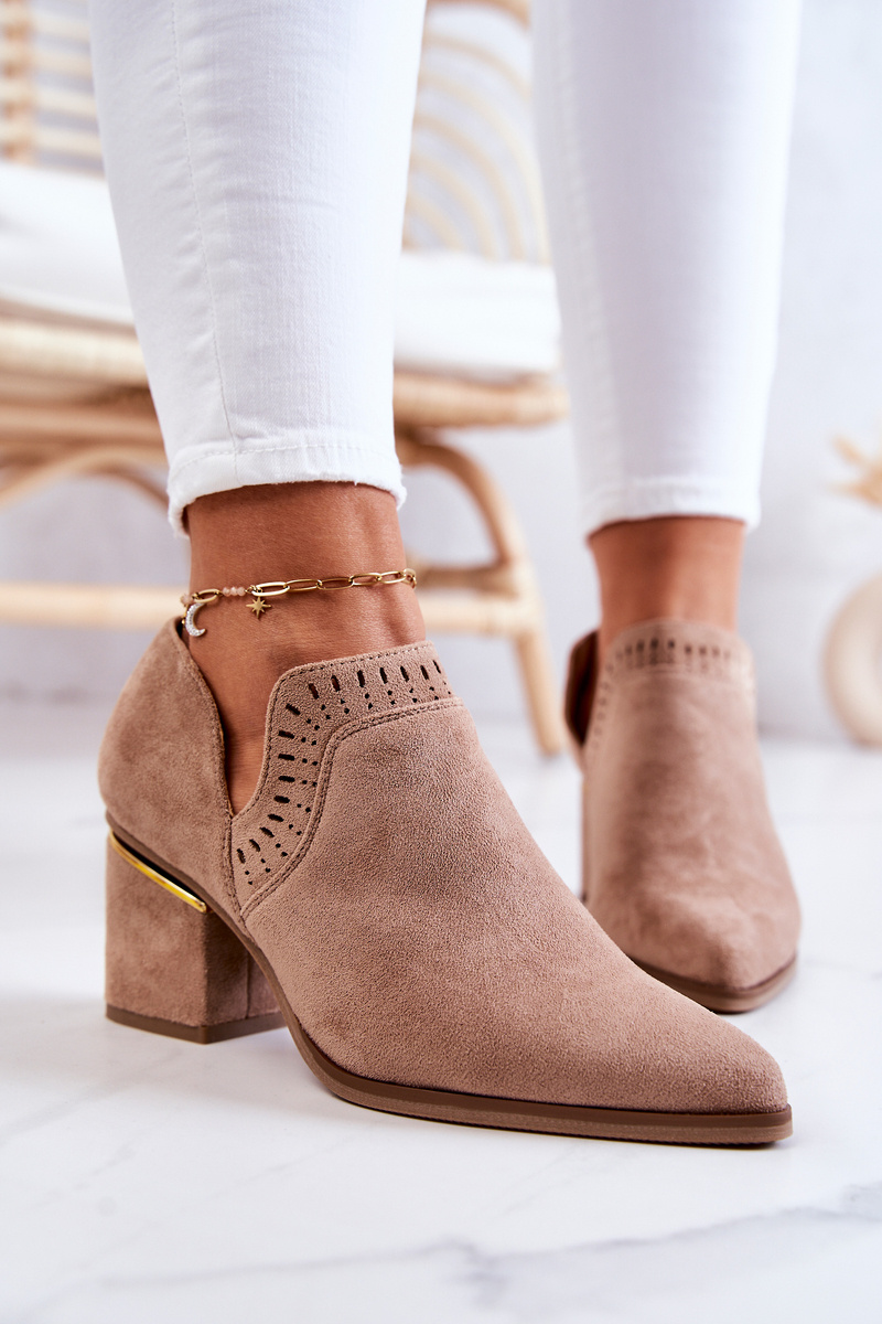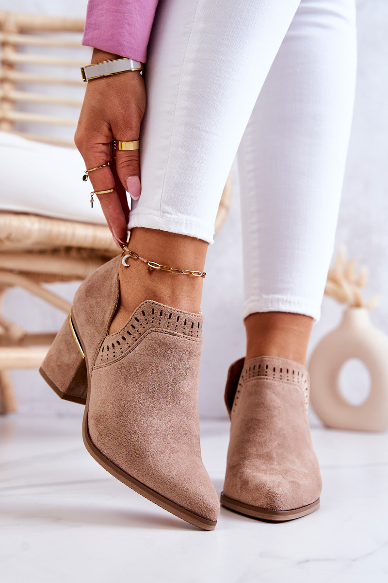 Semišové prolamované kovbojské boty tmavě Béžová Valerie