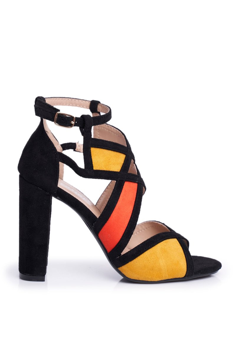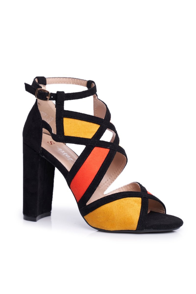 Semišové Sandály Na Podpatku Černo-Oranžové Emolly