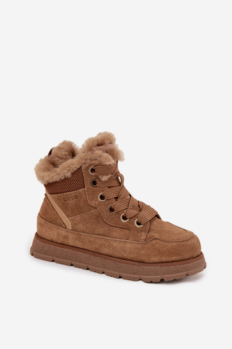 Semišové Sněhule Dámské Na Platformě S Kožíškem Big Star SS274370 Camel