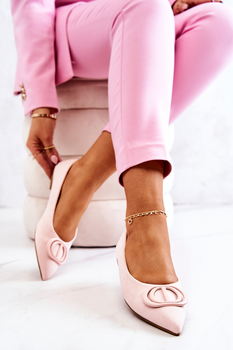 Elegantní baleríny s ozdobným plastovým prvkem. Obuv je celá vyrobena ze semišové ekokůže. Měkká stélka pro vaše pohodlí. Špičatá špička. Baleríny doplní mnoho stylizací a budou užitečné při mnoha příležitostech. Nezapomeňte si prohlédnout celou naši kolekci balerín. Při výběru velikosti se řiďte tabulkou velikostí.