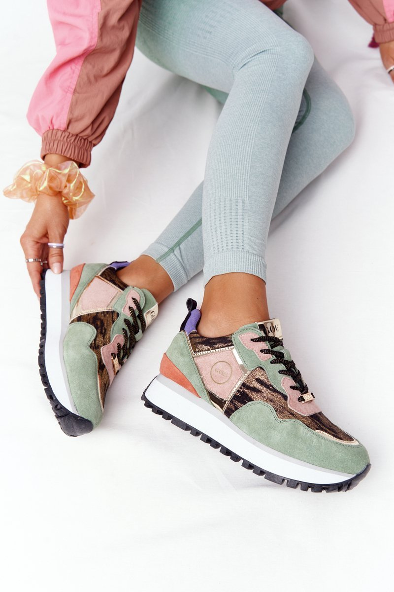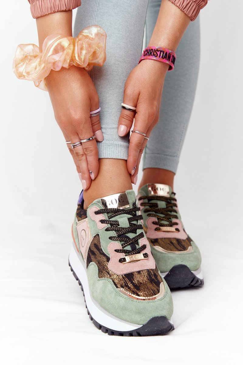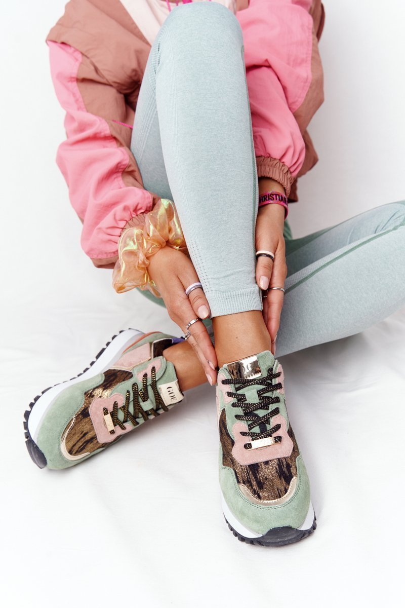 Semišové Sportovní Obuv Na Platformě GOE HH2N4002 Zelené-Zlaté