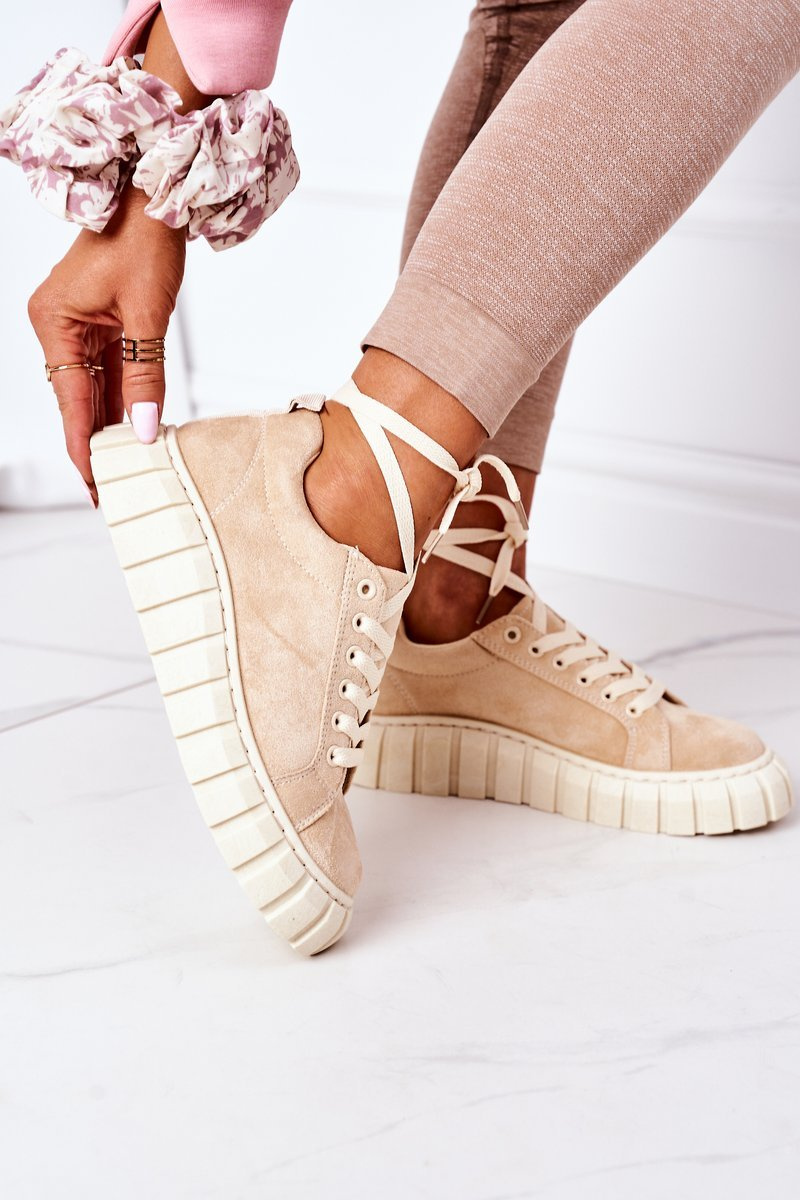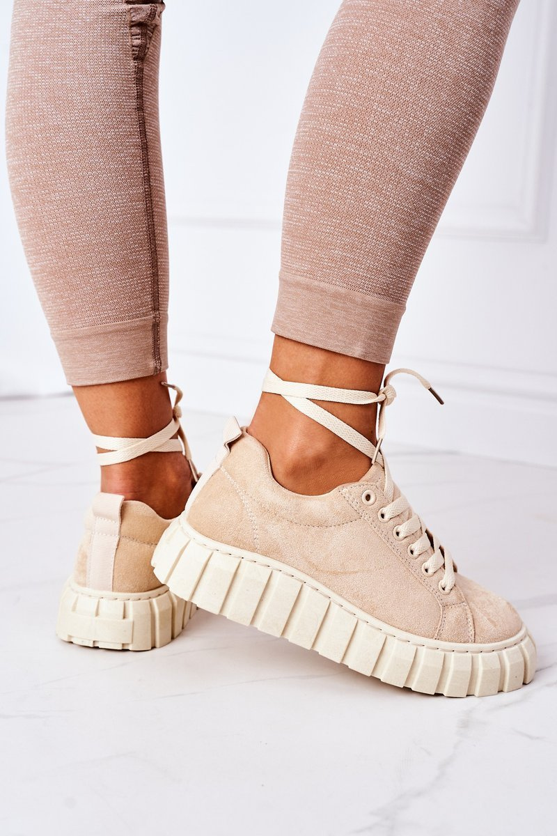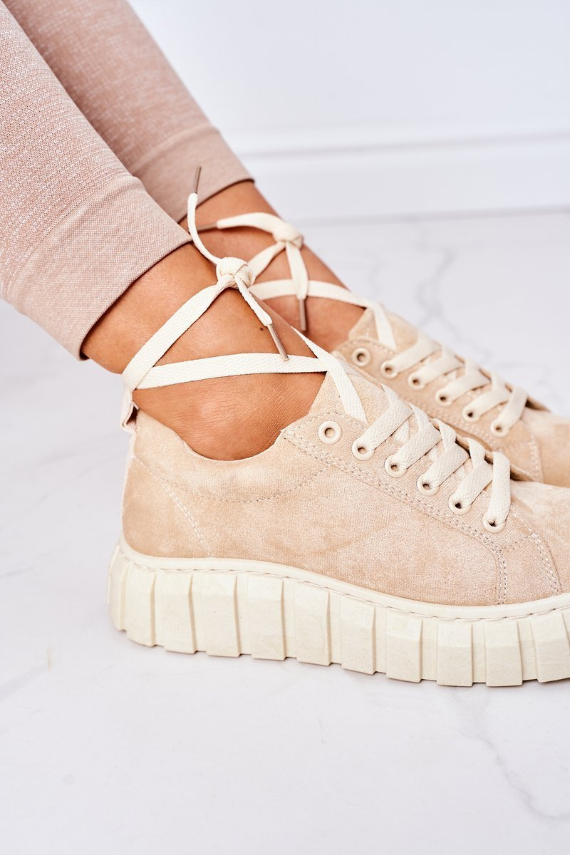 Módní tenisky na velké gumové platformě. Boty dobře pasují do tvaru nohy, mají svršek z ekologického semiše a protiskluzovou podrážku. Nezapomeňte se podívat na celou naši kolekci tenisek! Při výběru velikosti použijte tabulku velikostí.