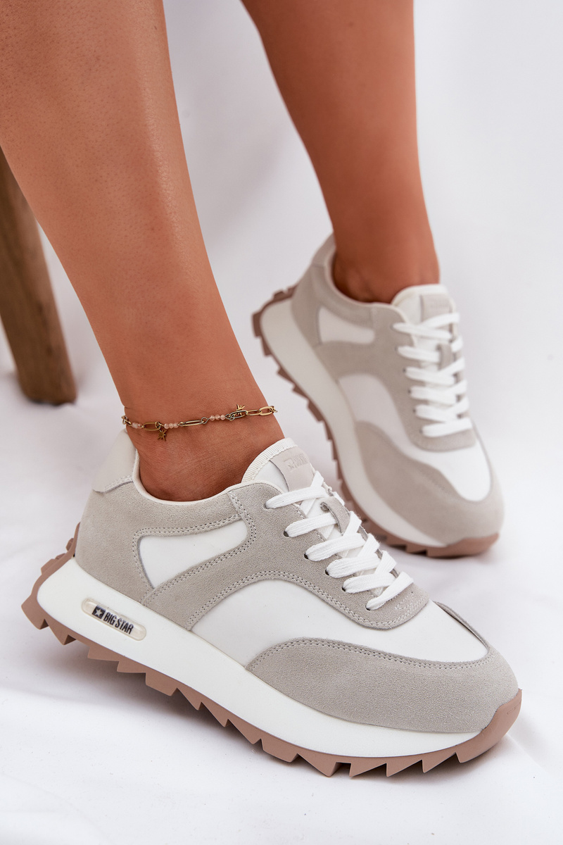 Semišové tenisky na platformě dámské Big Star RR274896 HI-POLY SYSTEM bílo-šedé