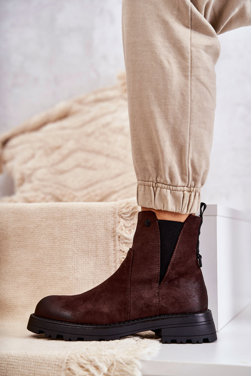 Semišové Teplé Boty Na Plochém Podpatku Hnědé Salome