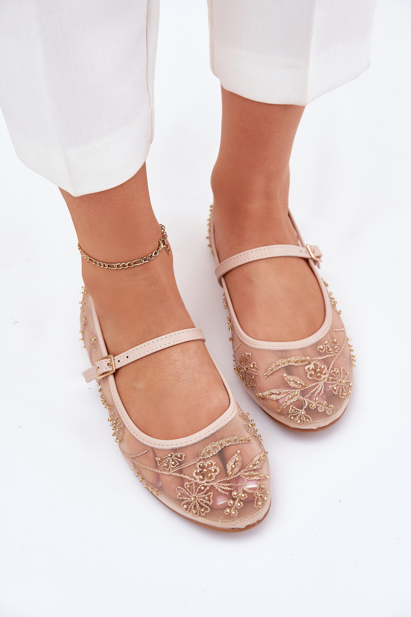 Síťované Baleríny S Vyšíváním A Ozdobou Béžové Tillilora