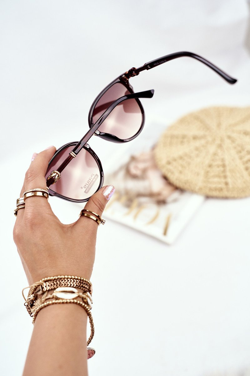 Brýle mají čočky s krásným gradientem bronzu a módních ozdob na chrámech viditelných na obrázcích.