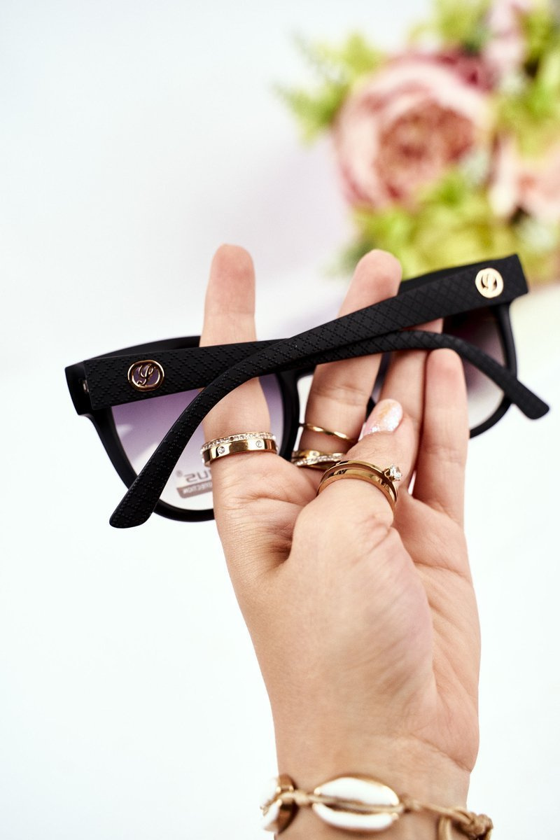 Brýle mají čočky s krásným gradient Černá a módní dekorace na chrámech viditelných na obrázcích.Fotografie jsou naším autorstvím a představují prodávaný produkt.
