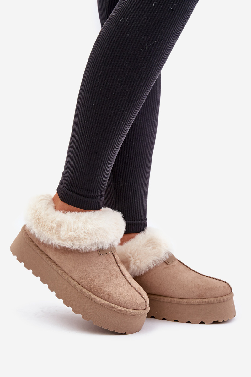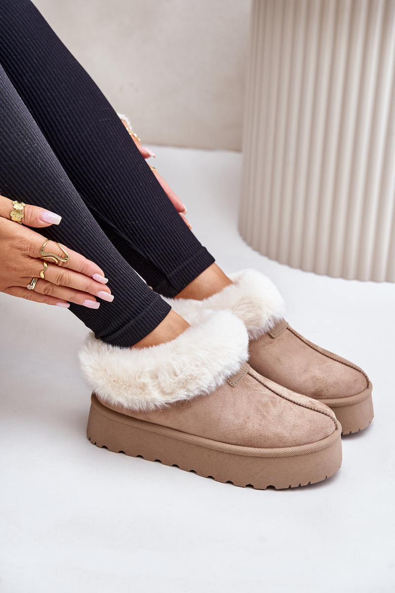 Sněhové Boty S Nízkým Svrškem S Kožíškem Na Platformě Eko Velur Tmavě Béžové Neathoria