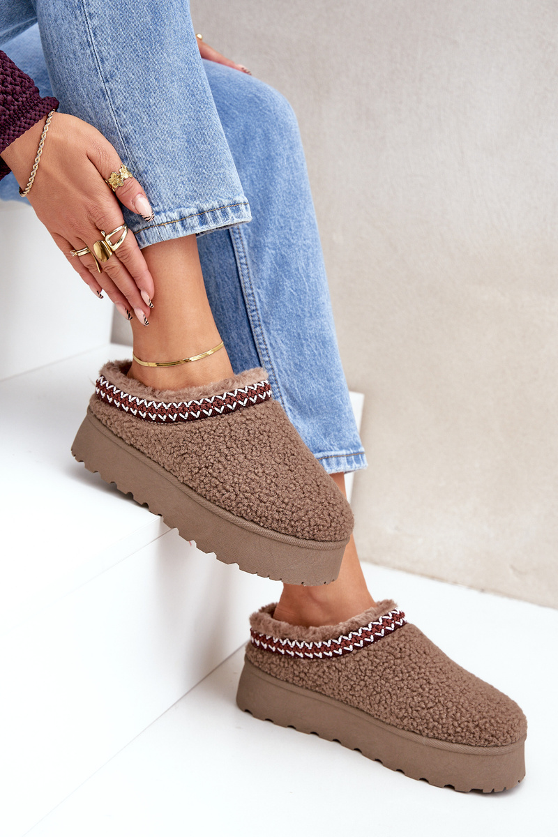 Sněhule Pantofle Na Platformě S Kožíškem Typu Beránek Hnědé Ovirissa