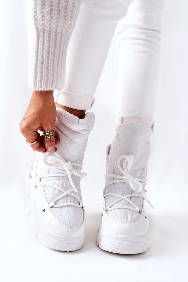 Hledáte teplé a pohodlné boty do sněhu? Pak jste našli to správné místo! Sněhule zateplené kožešinou příjemnou na dotek. Vnější část obuvi je vyrobena z textilního materiálu a patentované ekokůže. Pevné šněrování zajišťuje dokonalé přizpůsobení noze. Vysoká platforma. Ozdobný prvek v zadní části podrážky. Při výběru velikosti se řiďte tabulkou velikostí.