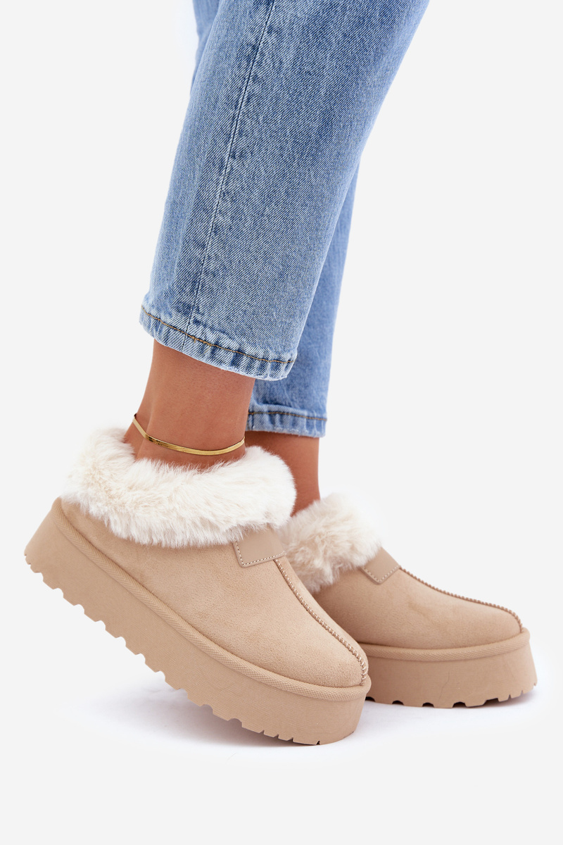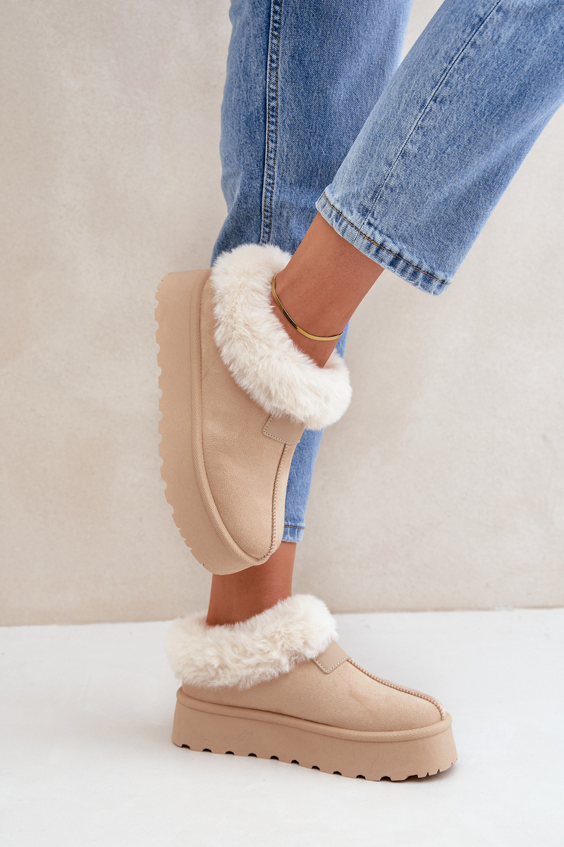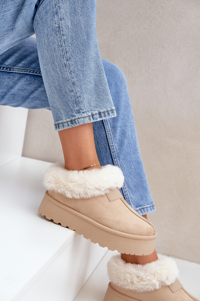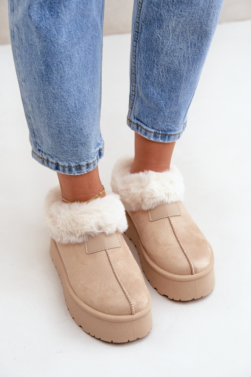 Sněhule S Nízkým Svrškem S Kožíškem Na Platformě Eko Semišové Světle Béžové Neathoria