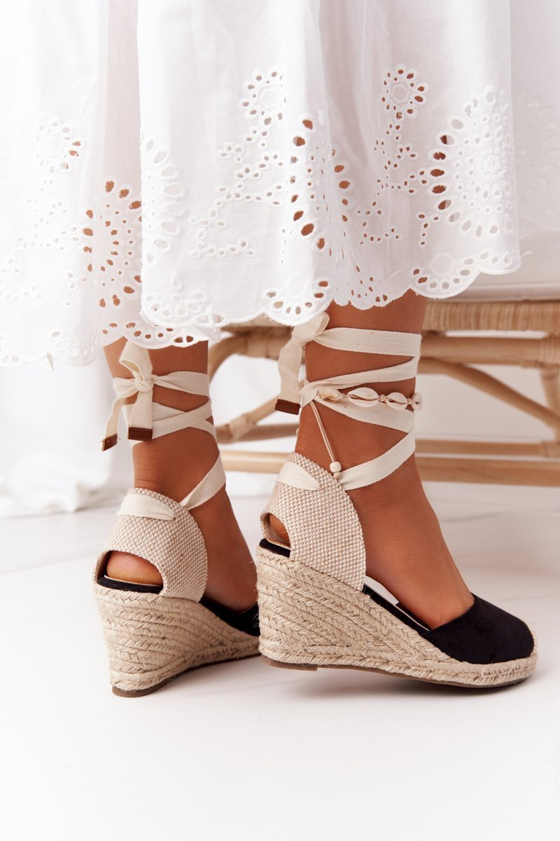 Šněrovací Pletené Klínové Sandály Černé Nelly