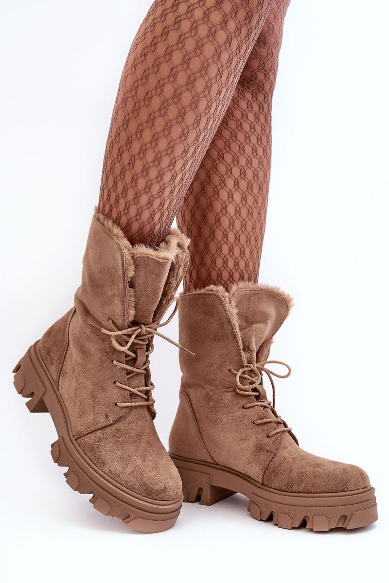 Šněrovací Zimní Boty Z Kožešinou Tmavě Béžové Frendo
