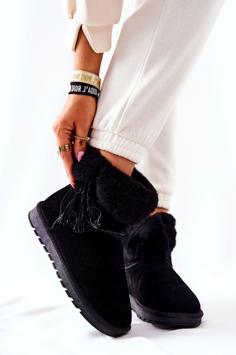 Sněhové boty zateplené umělou kožešinou budou ideální během chladnějších dnů. Na bocích mají střapce. Svršek z přírodního semiše. Na svrchní části je také kožešina. Nepropásněte svou šanci a prohlédněte si naši kolekci sněhulí! Při výběru velikosti se řiďte tabulkou velikostí.