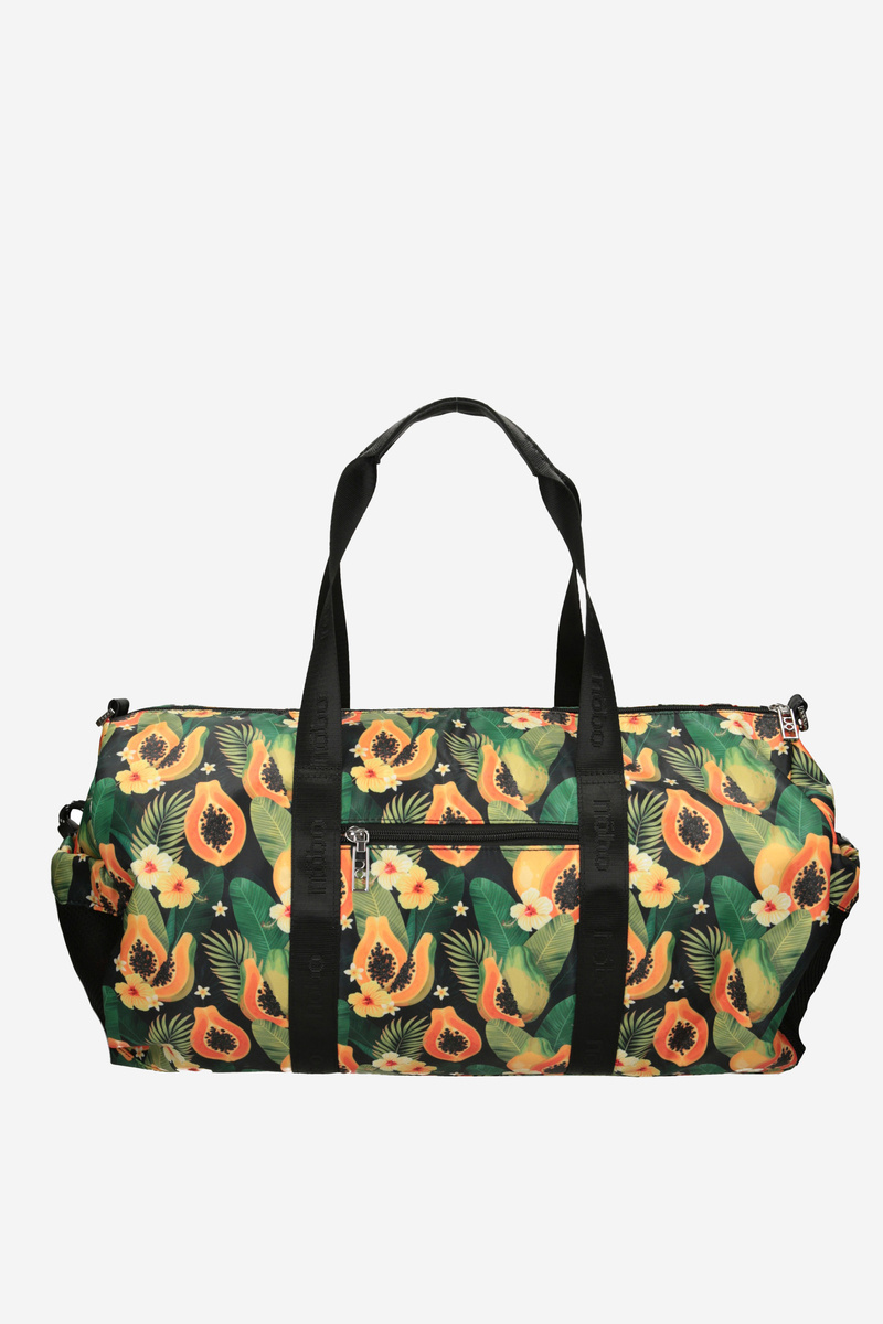 Taška je vyrobena z tkaniny odolné vůči skvrnám s krásným potiskem. Má odnímatelný, nastavitelný popruh. Taška má jednu komoru uzavíranou na zip, přičemž uvnitř jsou dvě kapsy zapínané rovněž na zip a popruh s karabinkou na upevnění klíčů. Taška má praktická ucha. Na vnější straně jsou dvě kapsy uzavíratelné stahovací šňůrkou s lemem a dvě kapsy uzavíratelné na zip.