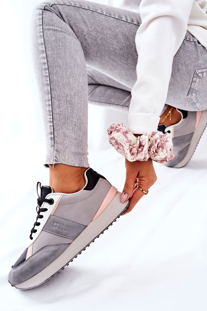 Dámská sportovní obuv od značky Big Star. Boty mají protiskluzovou podrážku a jedinečnou stélku MEMORY FOAM SYSTEM. Stélka si pamatuje tvar chodidla, dokonale padne, tlumí nárazy, je odolná proti deformaci a umožňuje odpařování vlhkosti a regulaci teploty. Sportovní obuv má masivní platformu, díky které se v ní můžeme cítit stabilně. Při výběru velikosti se řiďte tabulkou velikostí.