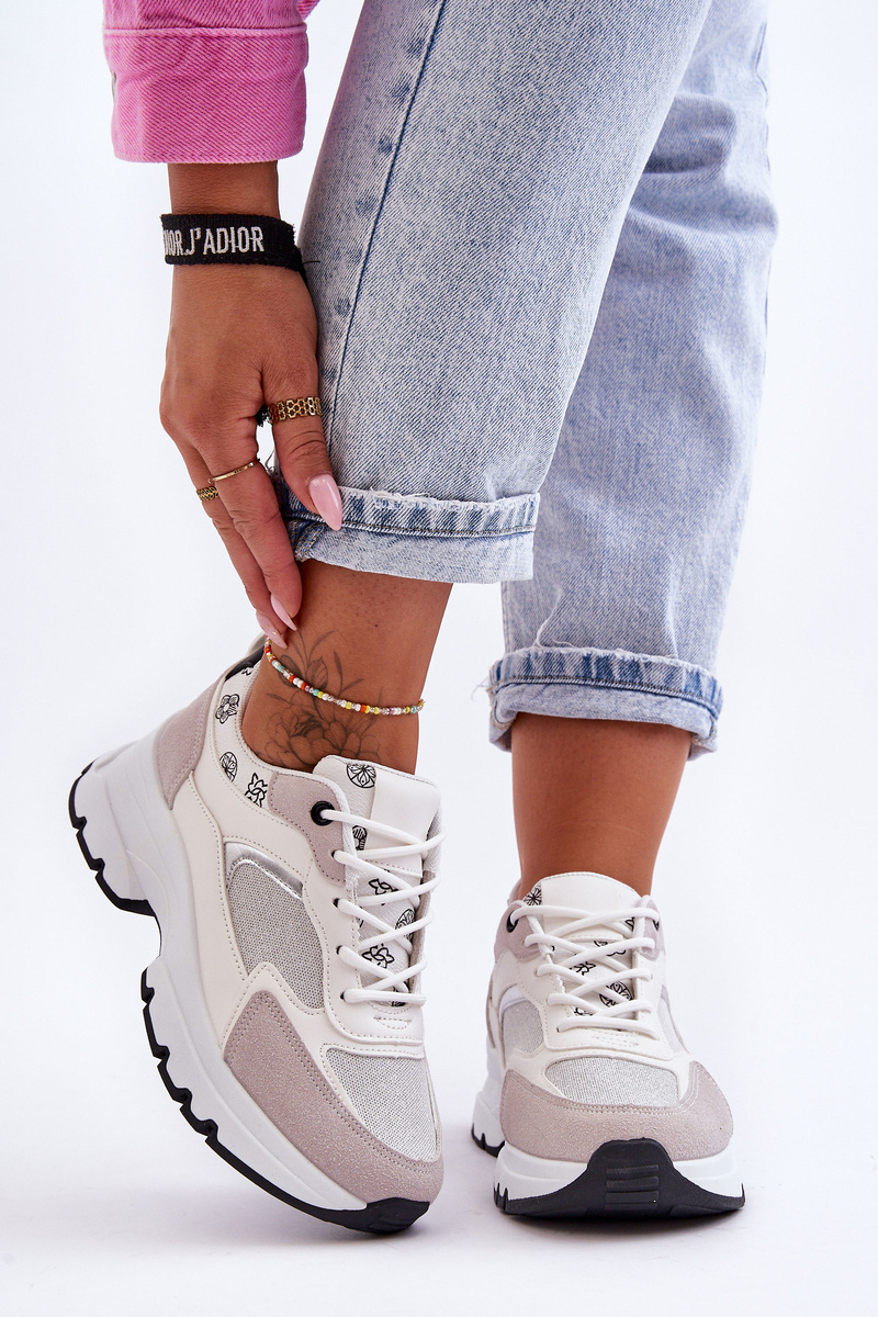 Dámské sportovní boty jsou vyrobeny z ekologické kůže a textilního materiálu. Osazené na platformě a plochém podpatku z umělého materiálu. Tyto boty mají dekorativní vložky a jsou klasicky šněrovány, což umožňuje správné přizpůsobení boty tloušťce nohy. Při výběru velikosti se řiďte tabulkou velikostí.