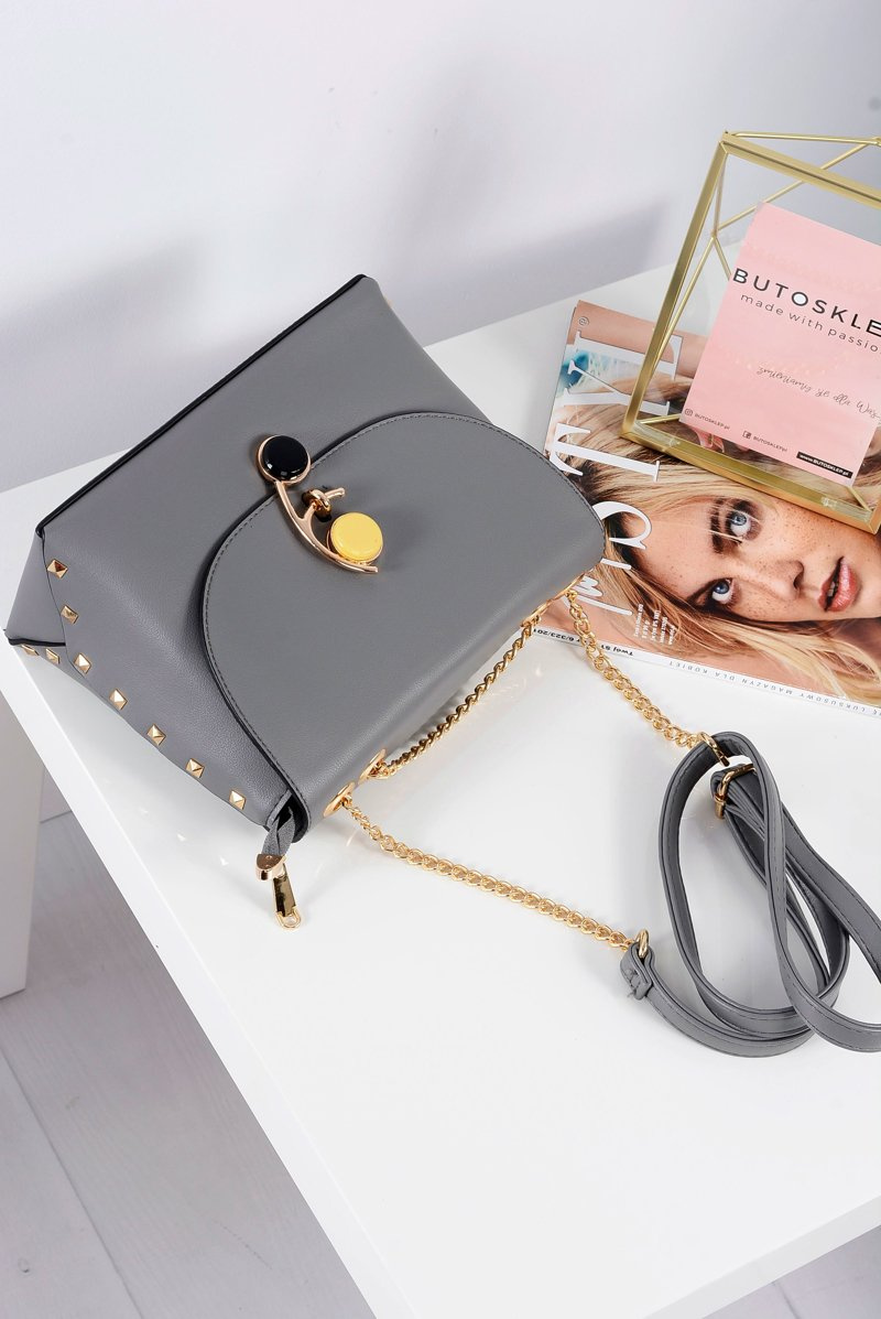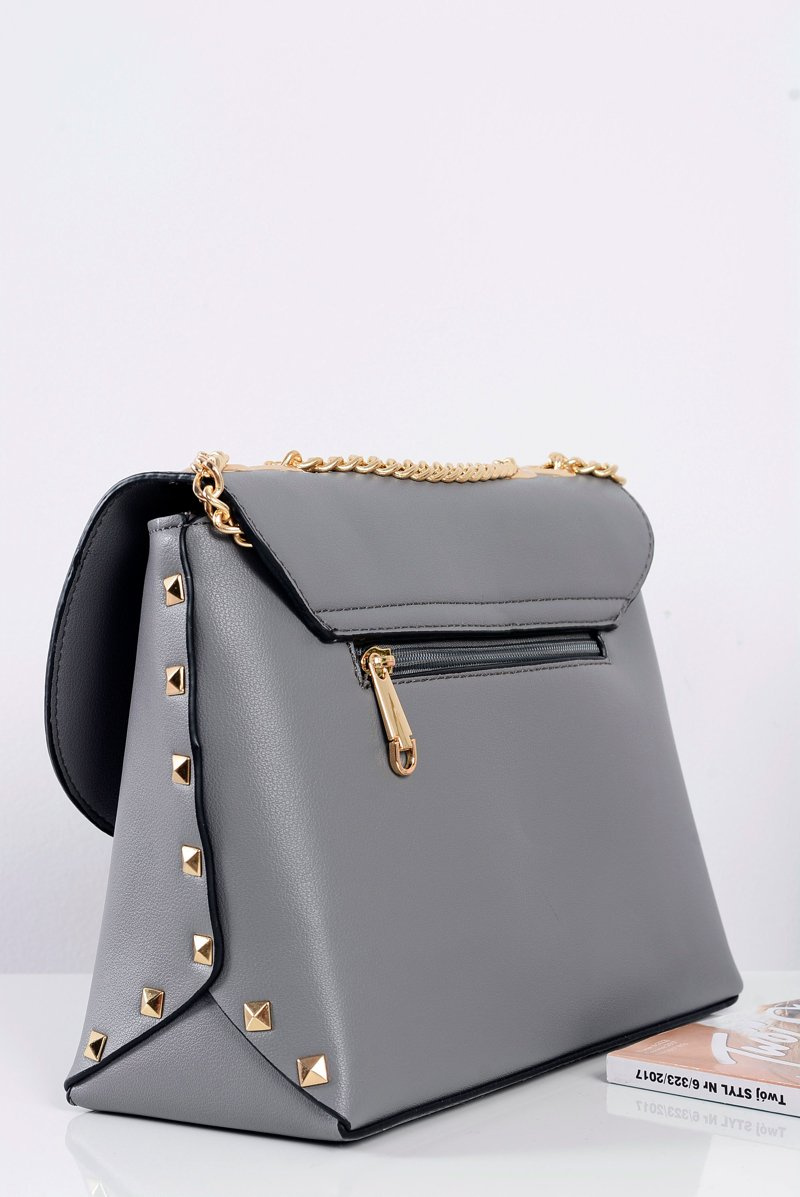 Stylowa Szara Torebka Damska Listonoszka Złoty Łańcuch