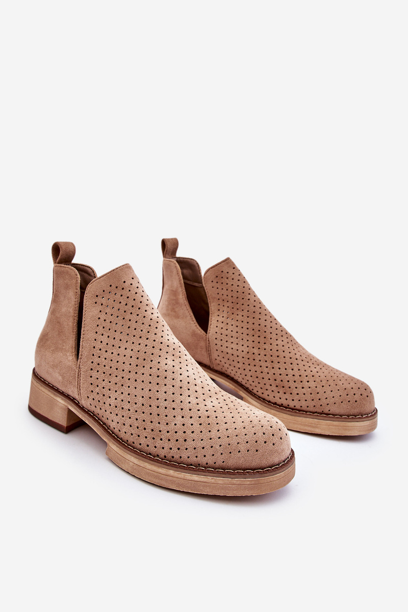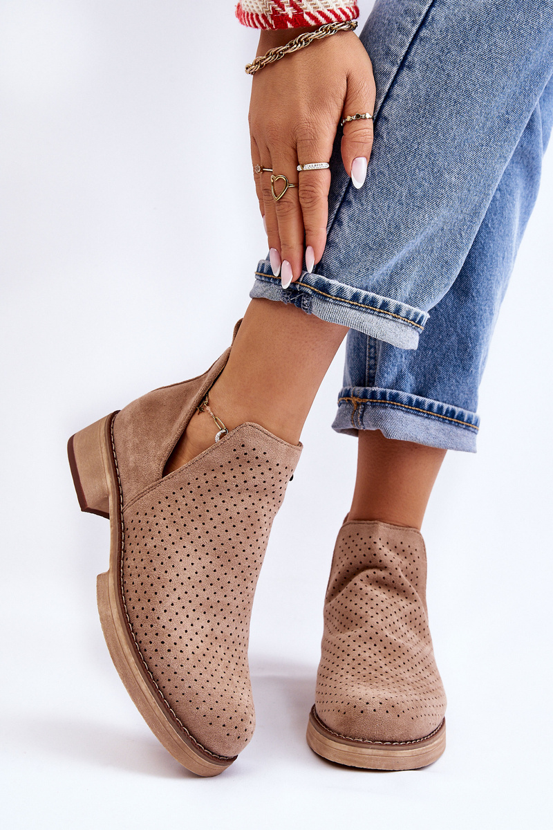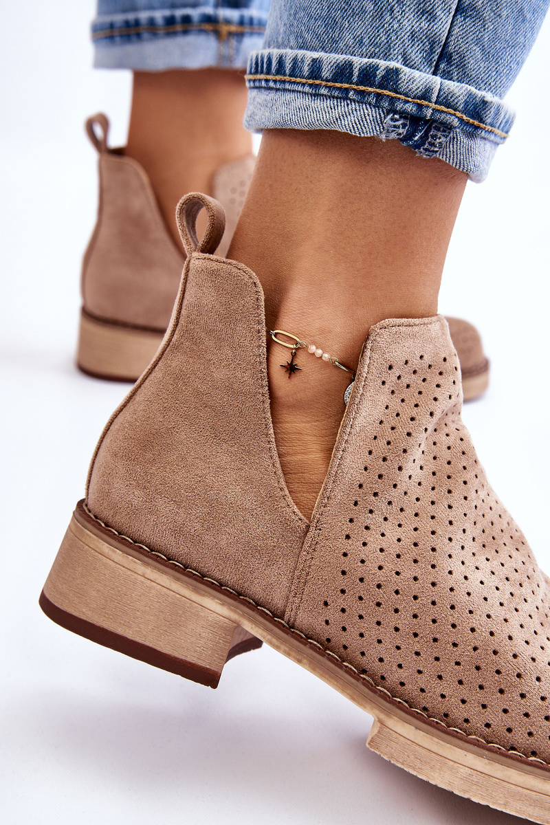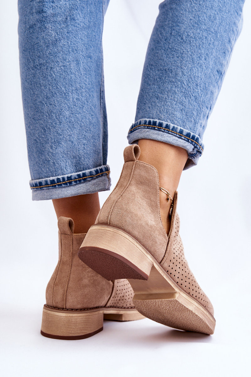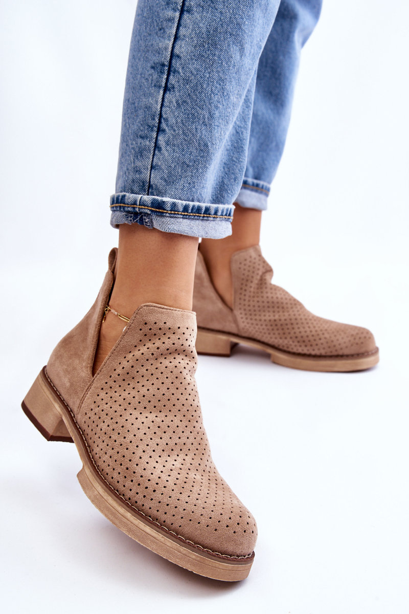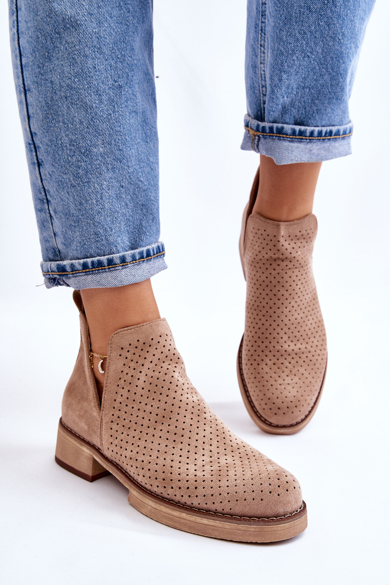 Suede prolamované boty na plochém podpatku tmavě béžová Angie