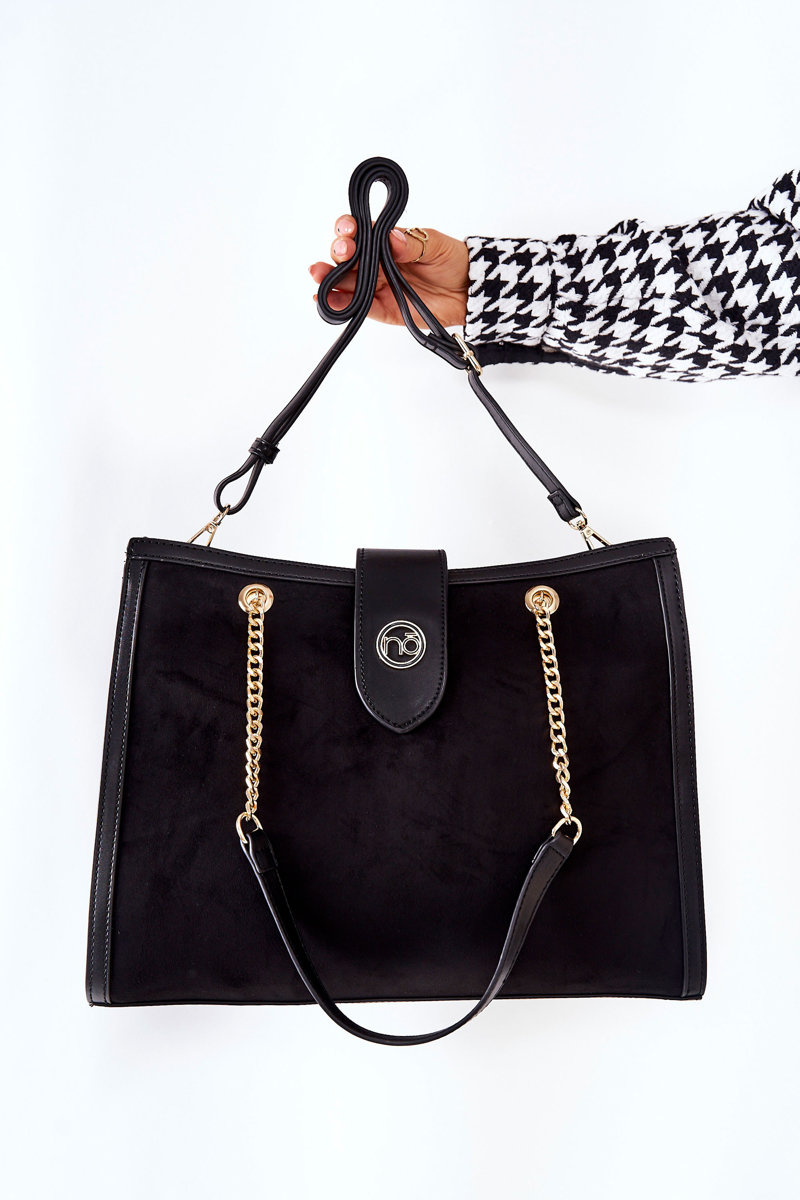 Taška je vyrobena ze semišové ekokůže. Má jednu vnější kapsu na zip. Přihrádka se uzavírá na zip a patentku. Kromě toho je k dispozici nastavitelný odnímatelný popruh. Vnitřní strana je vyrobena z látky s logem značky NOBO. K dispozici jsou také tři kapsy, z nichž jedna je na zip.