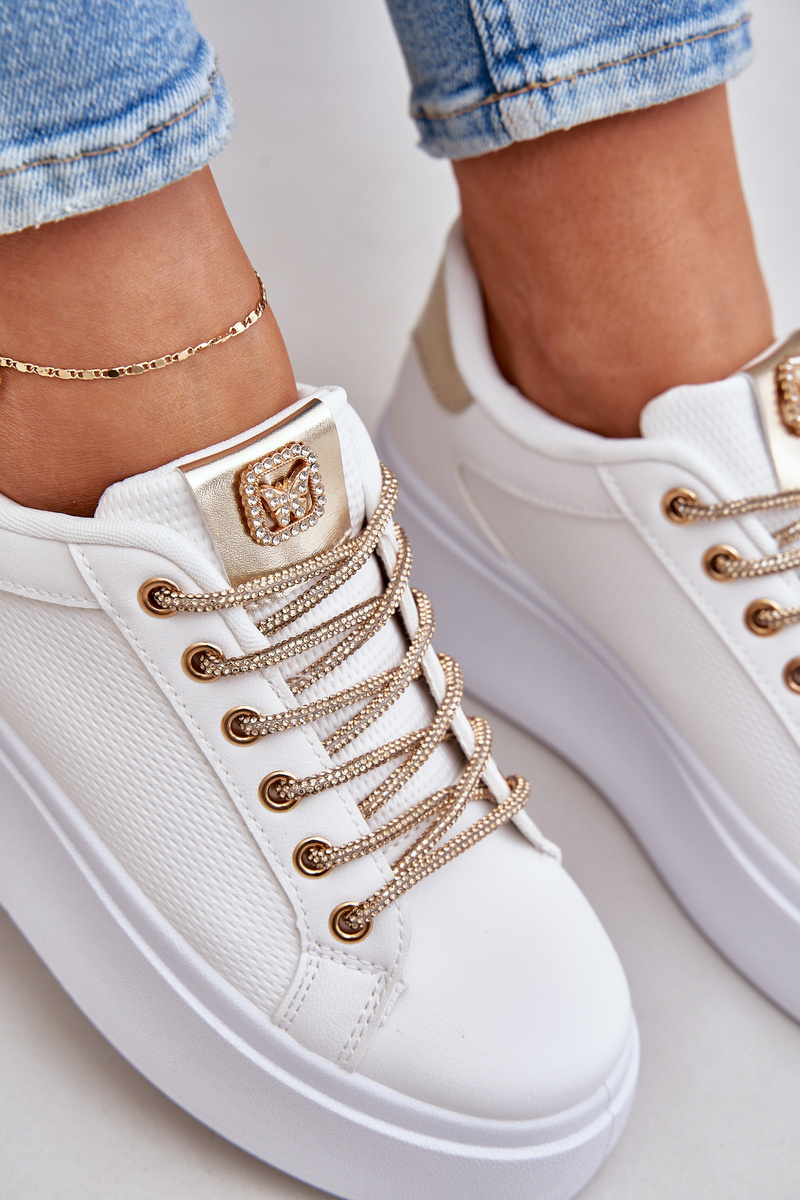 Tenisky Na Platformě S Ozdobnými Šňůrkami Bílá-Zlatá Fonetha
