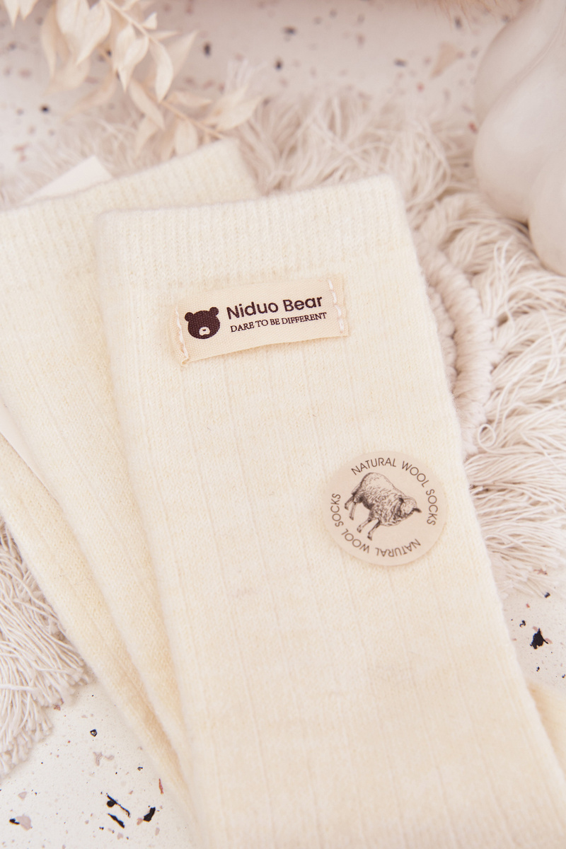 Teplé Vlněné Dámské Ponožky S Vyšívkou Ecru