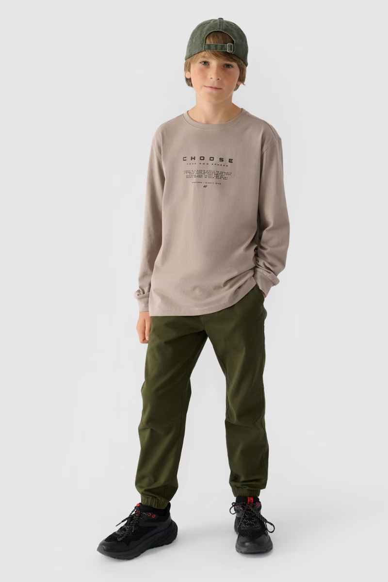 Tričko S Dlouhým Rukávem Pro Chlapce S Potiskem Regular 4F 4FJWAW24TLONM294-26S Šedé