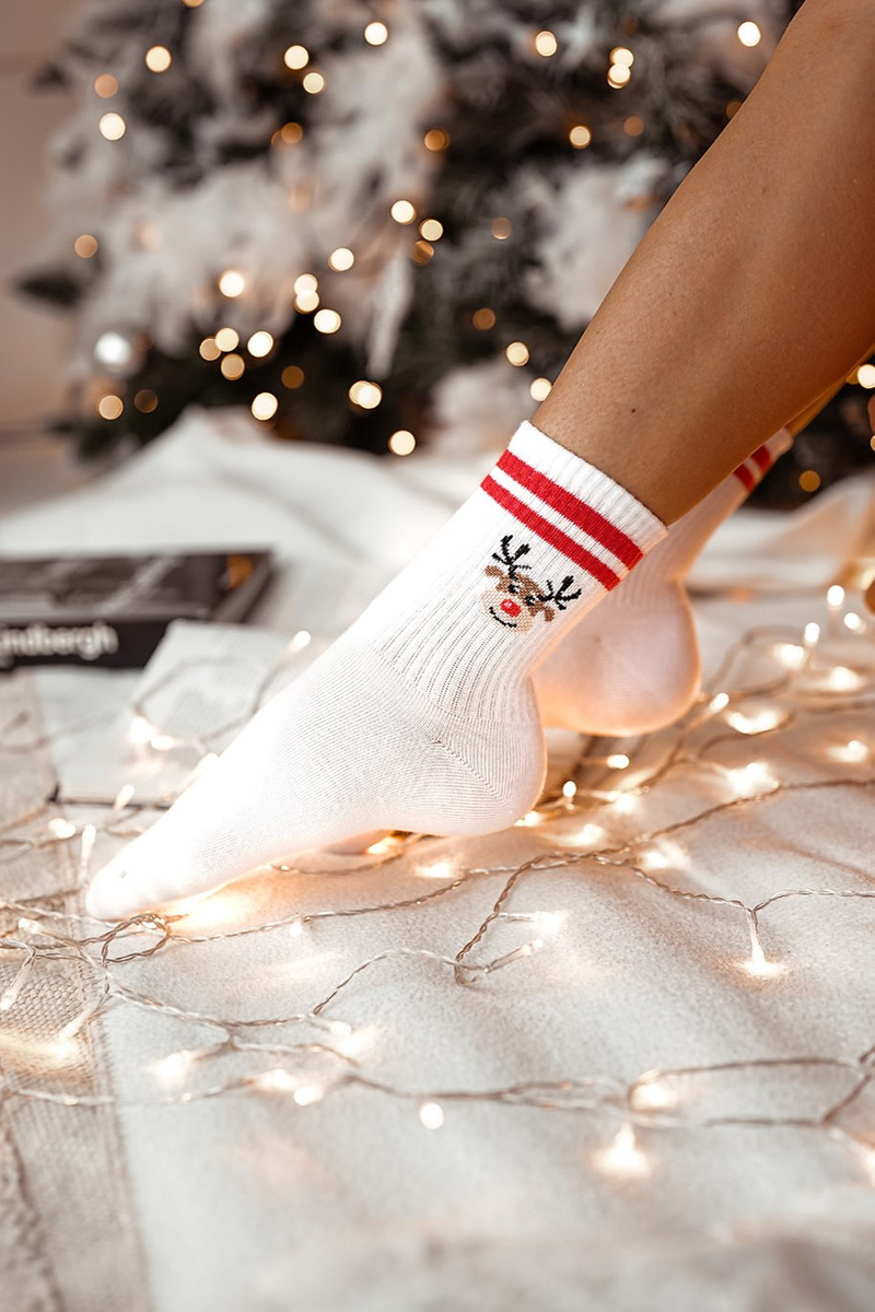 Vánoční ponožky sob pruhované s pruhy bílé