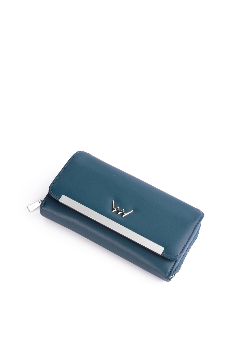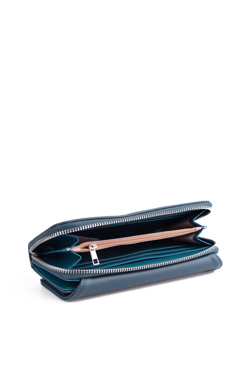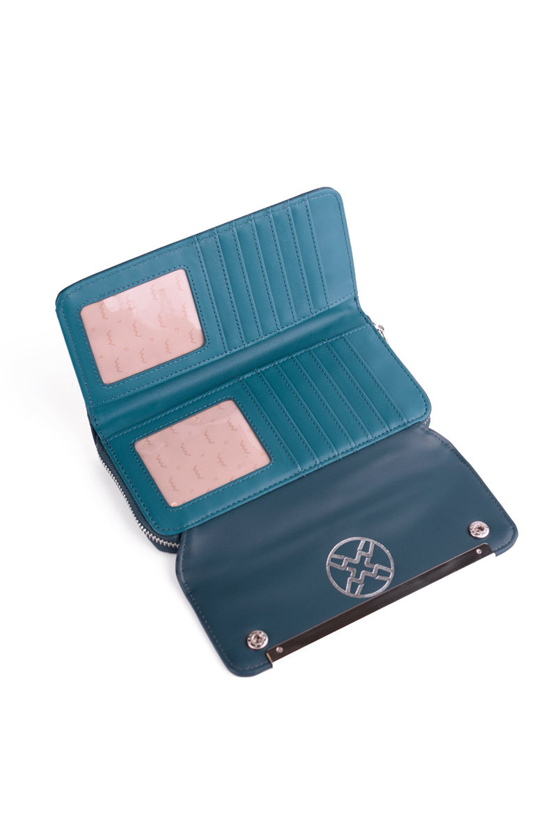 Peněženka se zapínáním. Je vyrobena z ekologické kůže. Má kovový emblém. Uvnitř jsou otevřené kapsy na bankovky a vizitky a kapsa na zip na mince. Díky krásně zpracovaným detailům vypadá tato peněženka opravdu nádherně! Musíte ho mít!