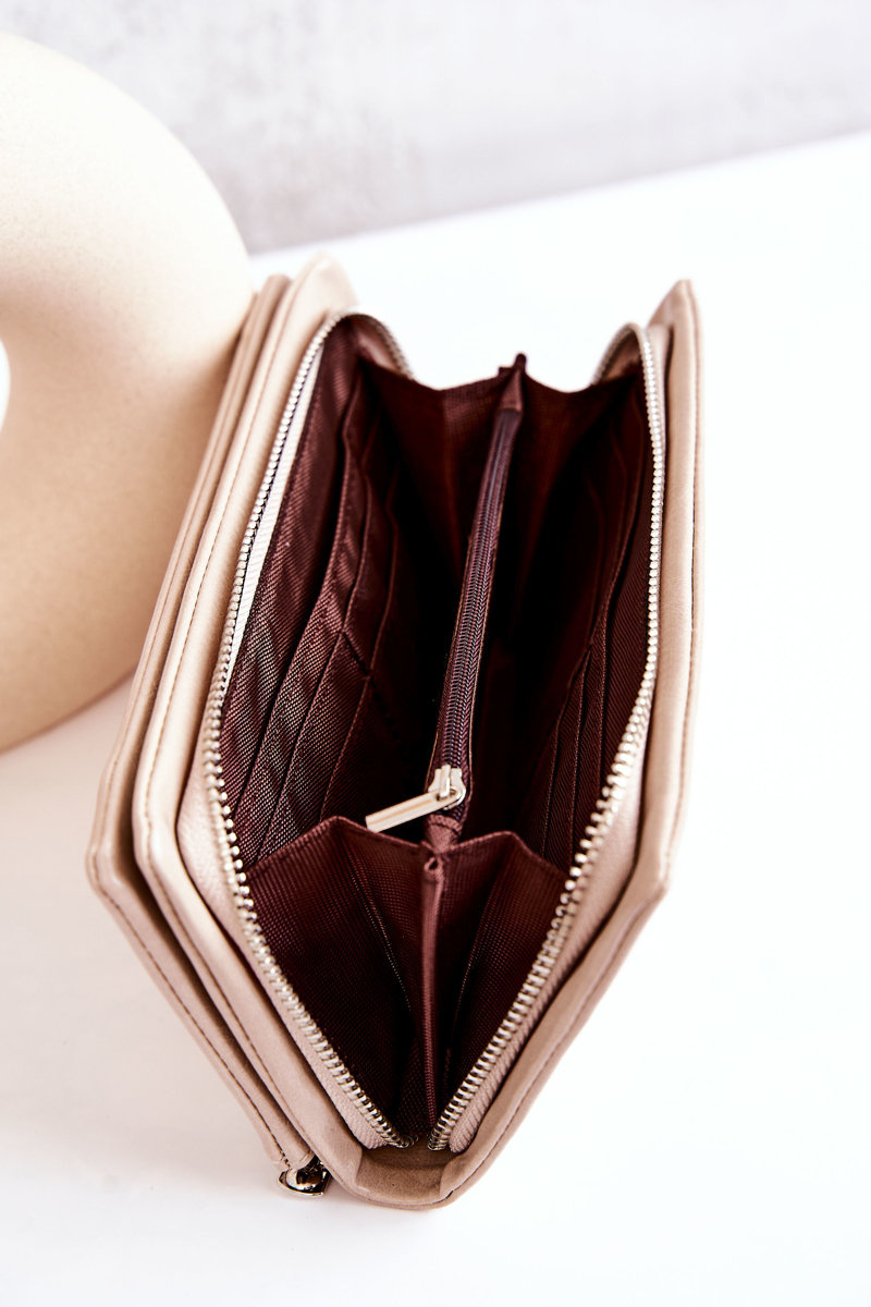 Peněženka byla vyrobena z eko kůže. Má tři vnější kapsy uzavíratelné na zip - malou, střední a velkou. U velké kapsy je navíc u zipu barevný pruh a uprostřed je místo na vizitky, mince a bankovky. Vypadá krásně jako doplněk. Rozhodně ho musíte mít!