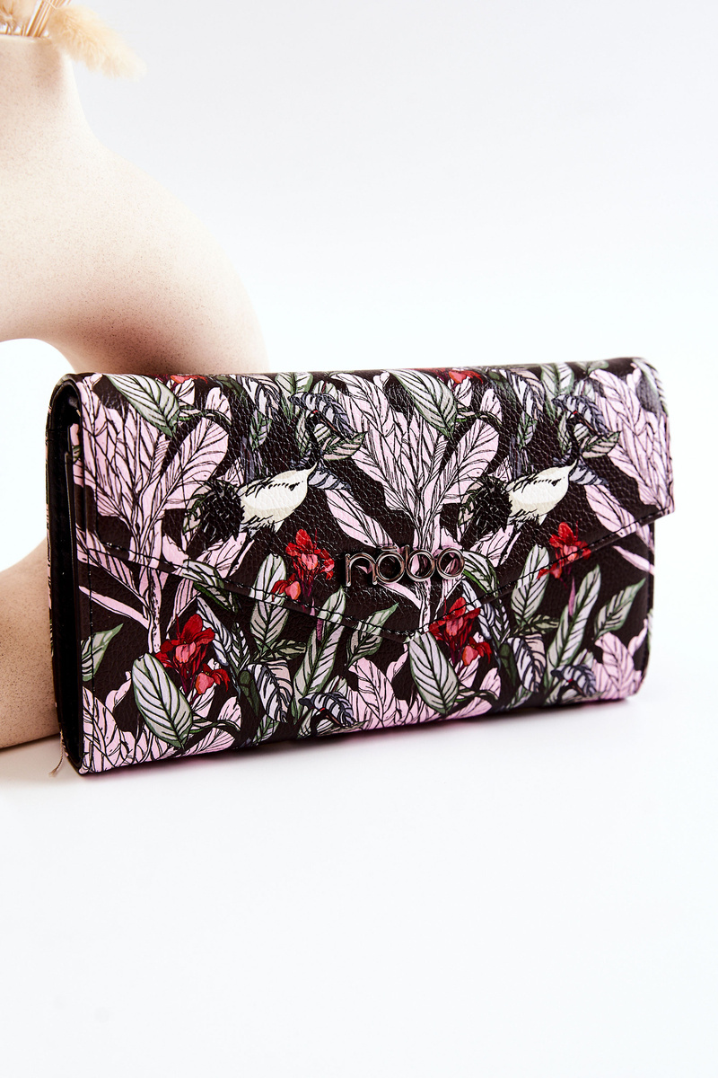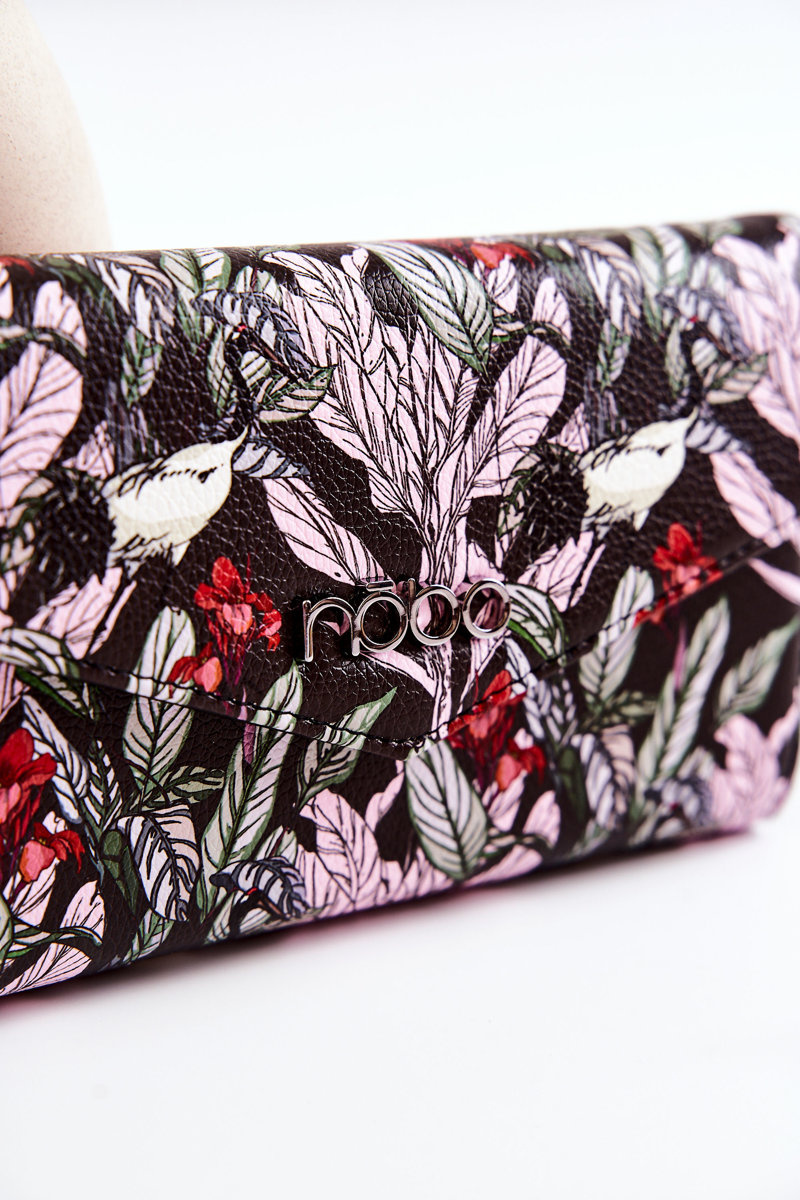Velká, dámská peněženka zapínaná na magnet. Byl vyroben z vysoce kvalitní eko kůže s důrazem na detail. Logo Nobo na klopě. Uvnitř jsou tři komory - dvě mají místa na vizitky, platební karty a bankovky a jedna se zapíná na zip. K peněžence je navíc připevněn kovový řetízek, takže ji můžete nosit i jako kabelku. Je to skvělé řešení, když s sebou potřebujete jen to nejnutnější, jako jsou doklady, peníze nebo chytrý telefon.