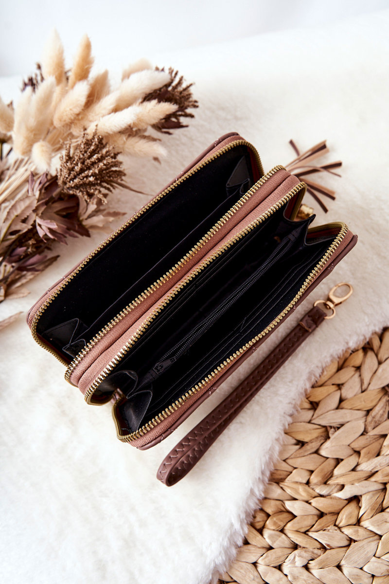 Velká Prošívaná Peněženka Se Zipy Kapučíno