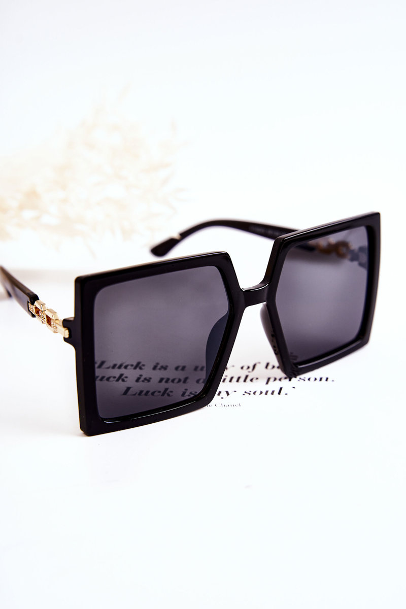 Velké čtvercové sluneční brýle V130043 Černá a zlatá