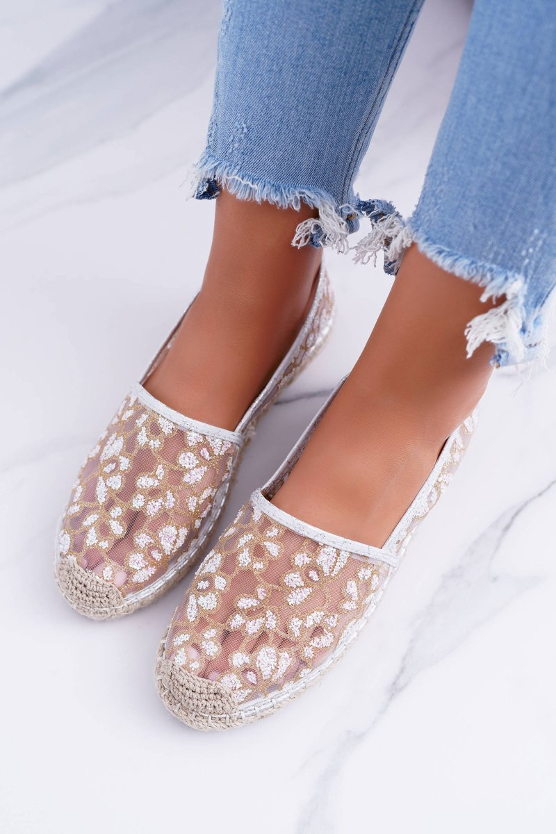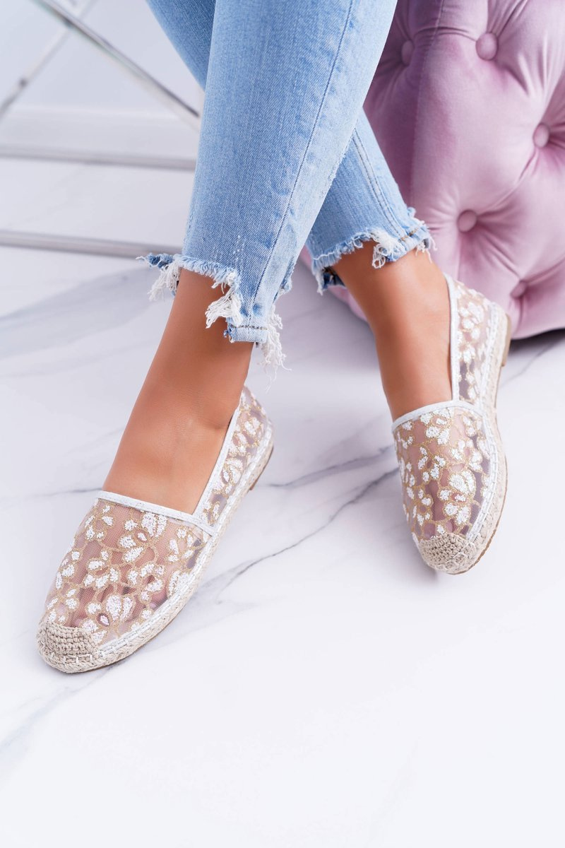 Vices | Białe Mokasyny Baleriny W Kwiaty Siatka Rede