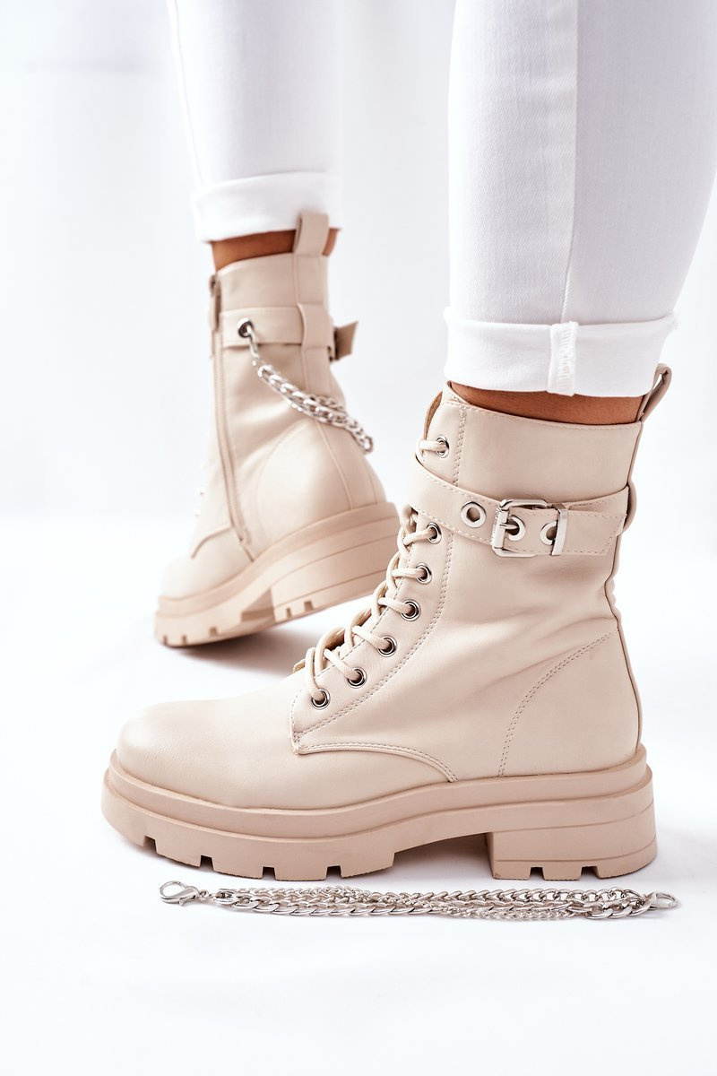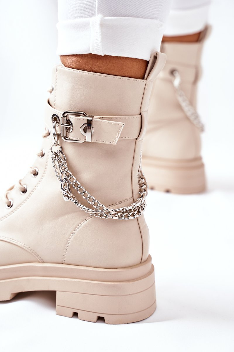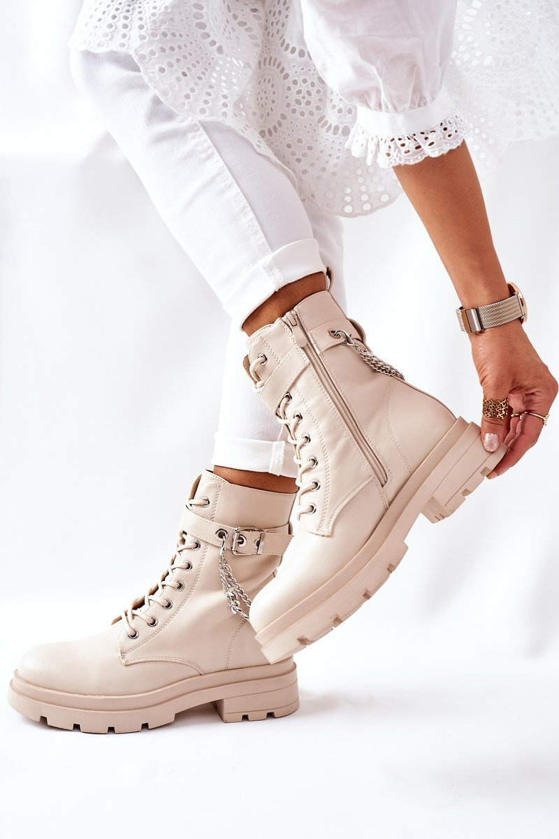 Neobvyklé a stylové boty z lakované ekologické kůže. Masivní platforma stabilizuje vaši chůzi. Svršek je zakončen elastickým materiálem, který se přizpůsobí lýtku. Při výběru velikosti použijte tabulku velikostí.