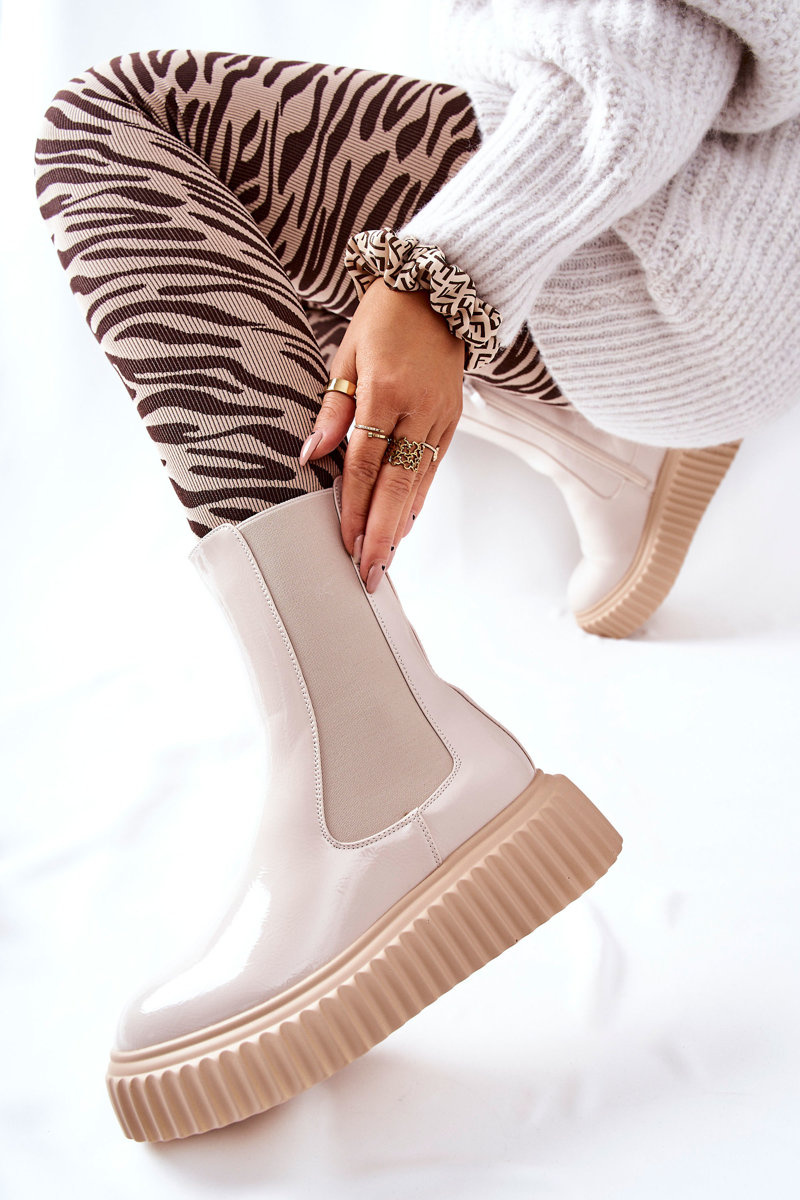 Snili jste někdy o lakovaných botách na platformě? Nyní máte šanci splnit si své sny! Pracovníci byli vyrobeni z lakované ekokůže. Vysoký svršek a zip pro snadné obouvání. Silná platforma podtrhuje jejich styl a navíc zaručuje dokonalou izolaci od země, takže jsou tyto boty ještě praktičtější. Uvnitř se zahřívá přikrývkou na boty. Při výběru velikosti se prosím řiďte tabulkou velikostí.