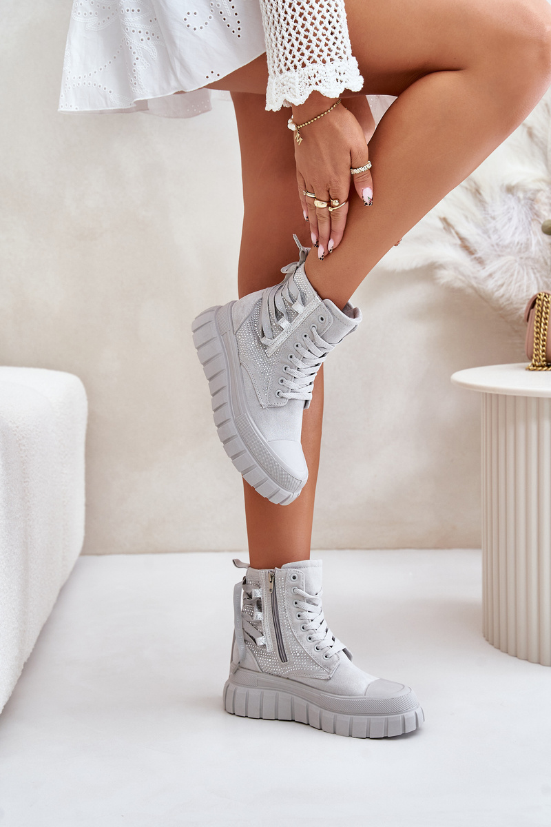 Vysoké dámské tenisky na masivní platformě se zdobením šedé Zaidria