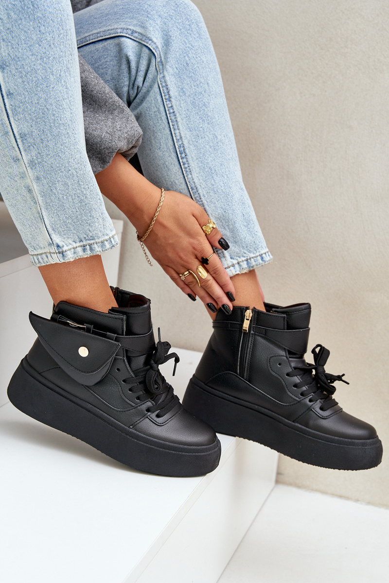 Vysoké sneakersy s kapsou na platformě černé Saramis