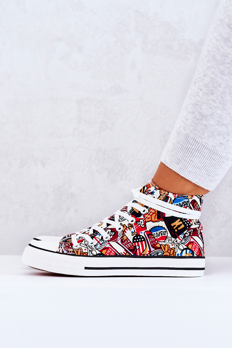 Vysoké tenisky v klasické podobě s módním vzorem. Kultovní tenisky se hodí k mnoha stylům. Boty dobře padnou tvaru nohy, mají měkkou vložku z materiálu a protiskluzovou podrážku. Model svázaný vyšším svrškem. Gumová špička. Určitě si prohlédněte celou naši kolekci dámských tenisek. Při výběru velikosti použijte tabulku velikostí.