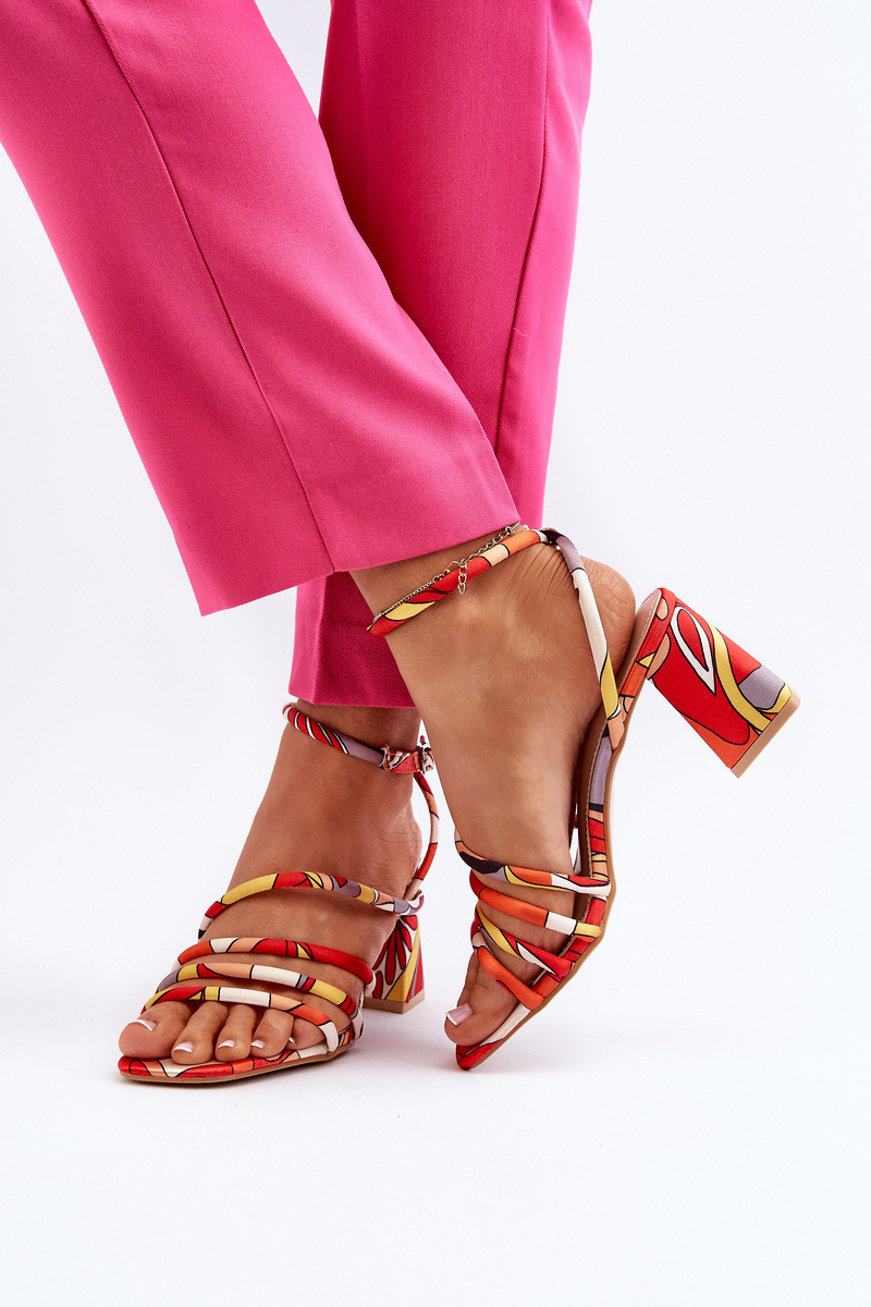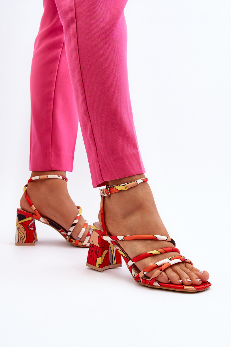 Vzorované sandály na podpatku oranžové Jenglla