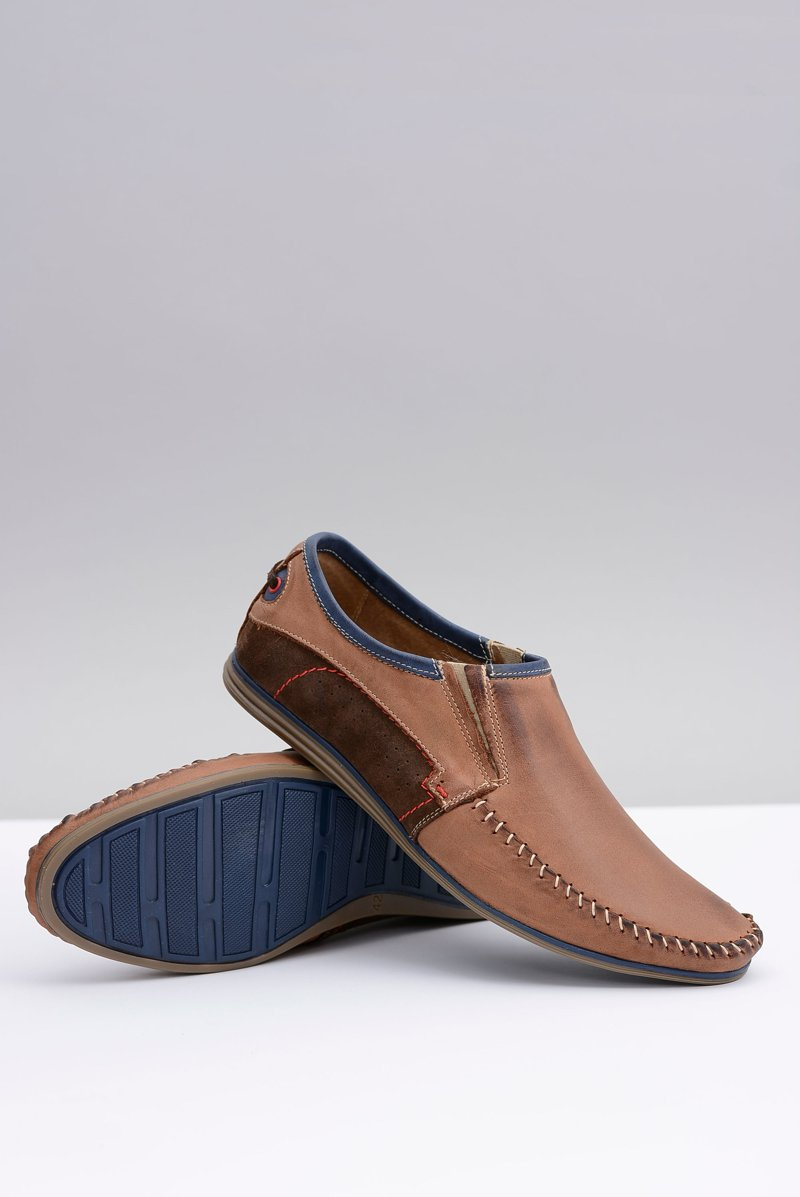Wsuwane Polskie Męskie Mokasyny Skóra Brąz Teodoro