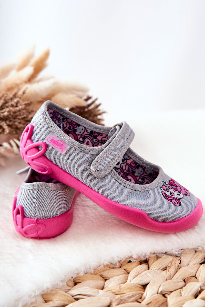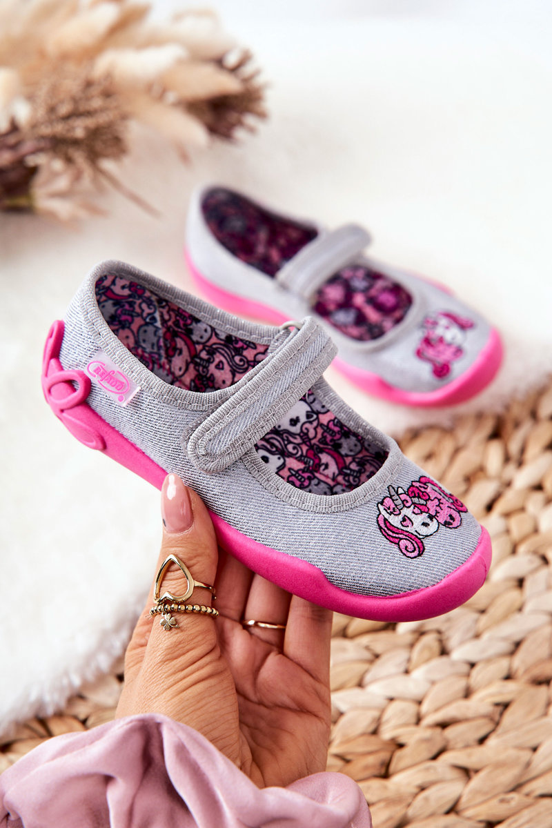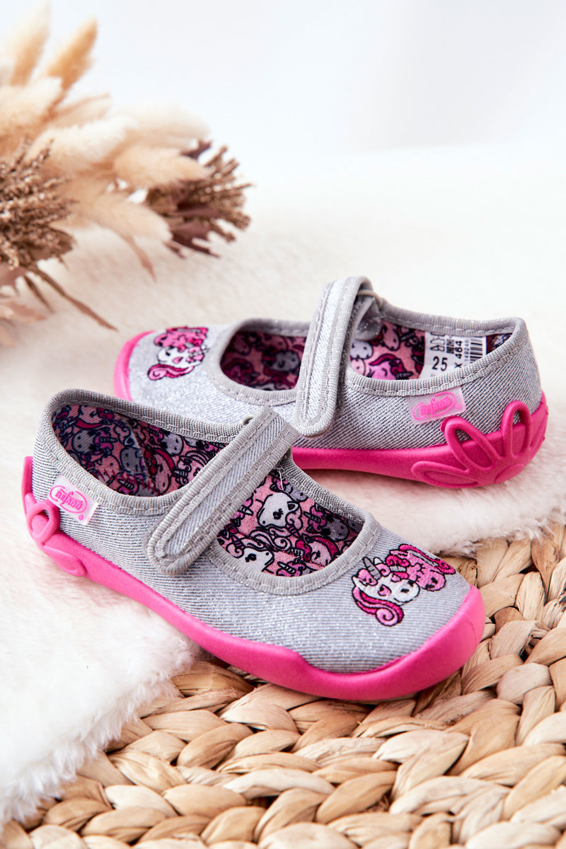 Žabky Baleríny Befado Jednorožci 114X464 Šedá a růžová