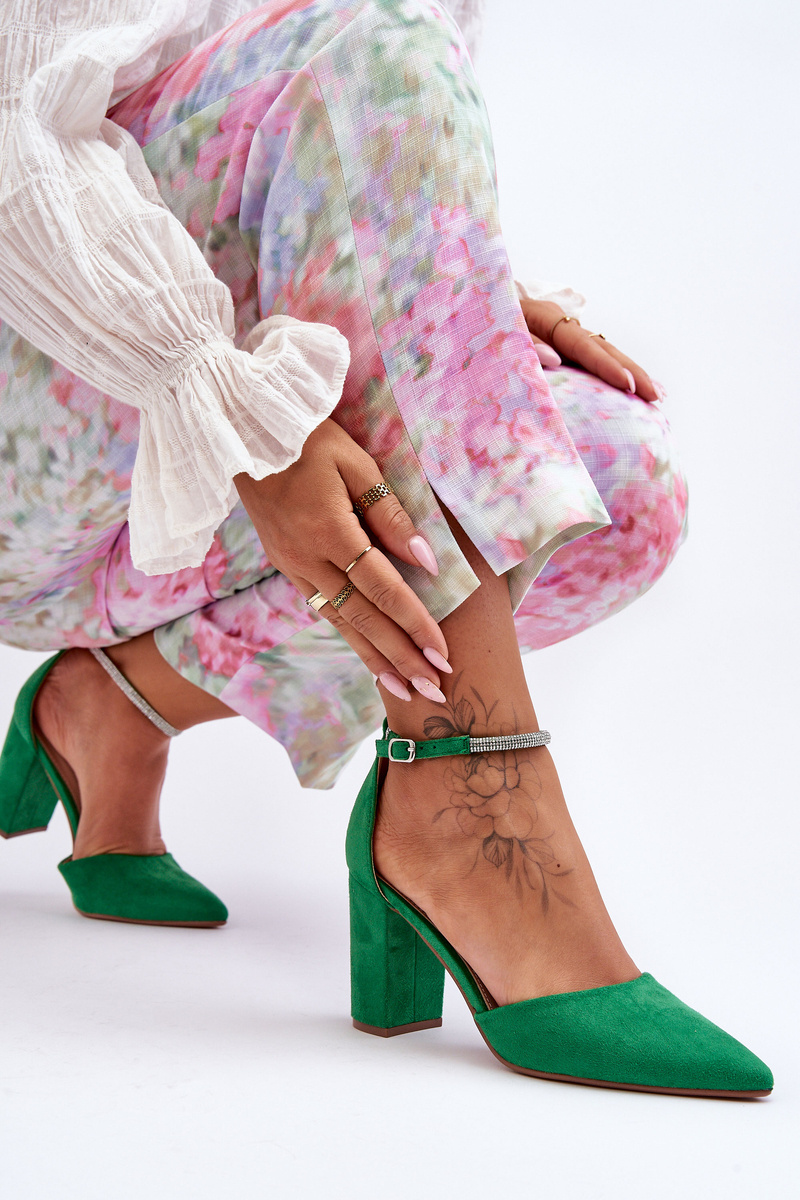 Zamszové Pumpy se Cyrkoniami Zelené Diamond