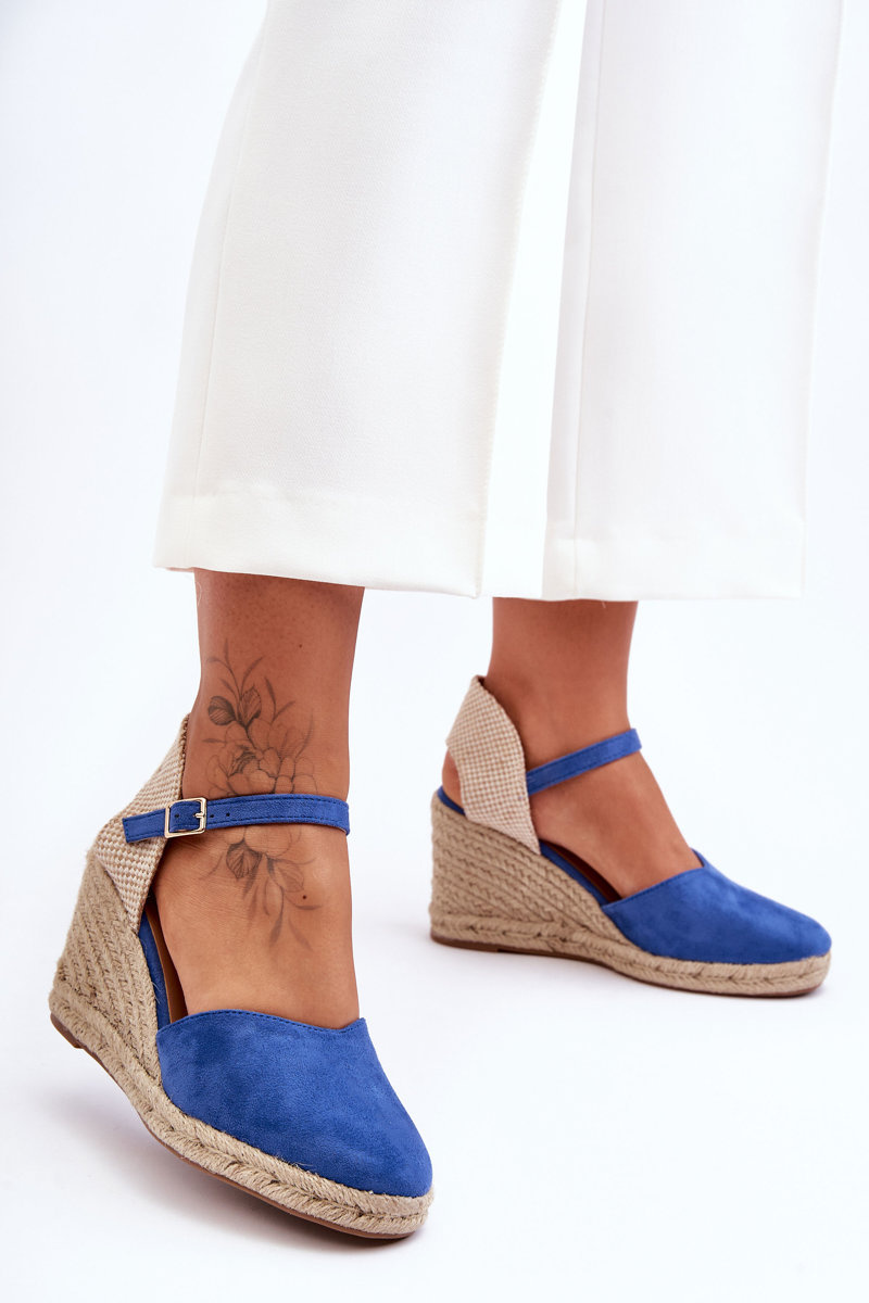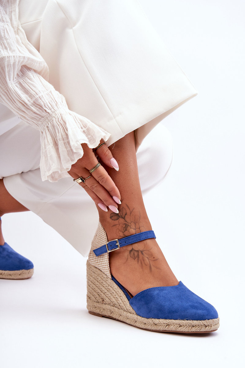 Zamszové Sandály Na Koturnu Modré Selfoss