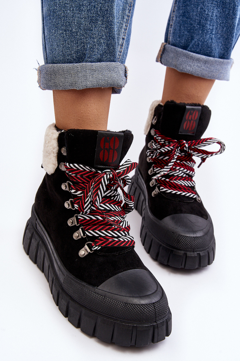 Zateplené boty trapery na tlusté podrážce černé Ralotta