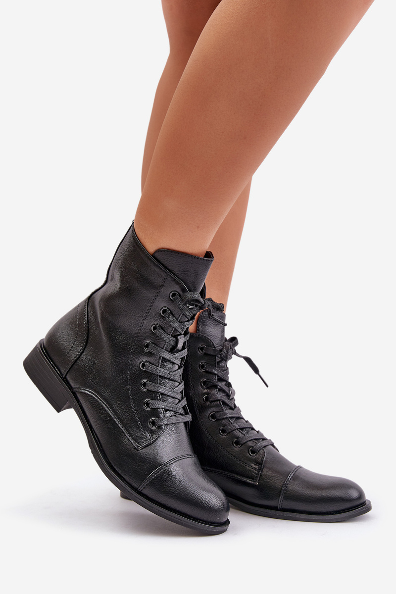 Klasické boty vyrobené z eko kůže jsou kombinací pohodlí a stylu. Usazené na plochém podpatku, zajišťují komfort při každodenním nošení. Zapínání na zip a šněrování usnadňuje obouvání a přizpůsobení se noze. Vnitřek je zateplen příjemným obuvnickým rounem, které zaručuje teplo v chladnějších dnech. Ideální na podzim a zimu. Při výběru velikosti se řiďte tabulkou velikostí.