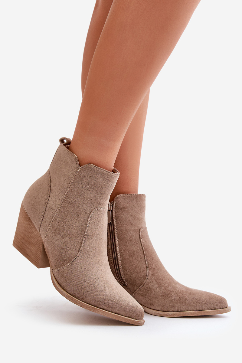 Zateplené cowboy boty eko zamšové na zip tmavě béžové Virtris