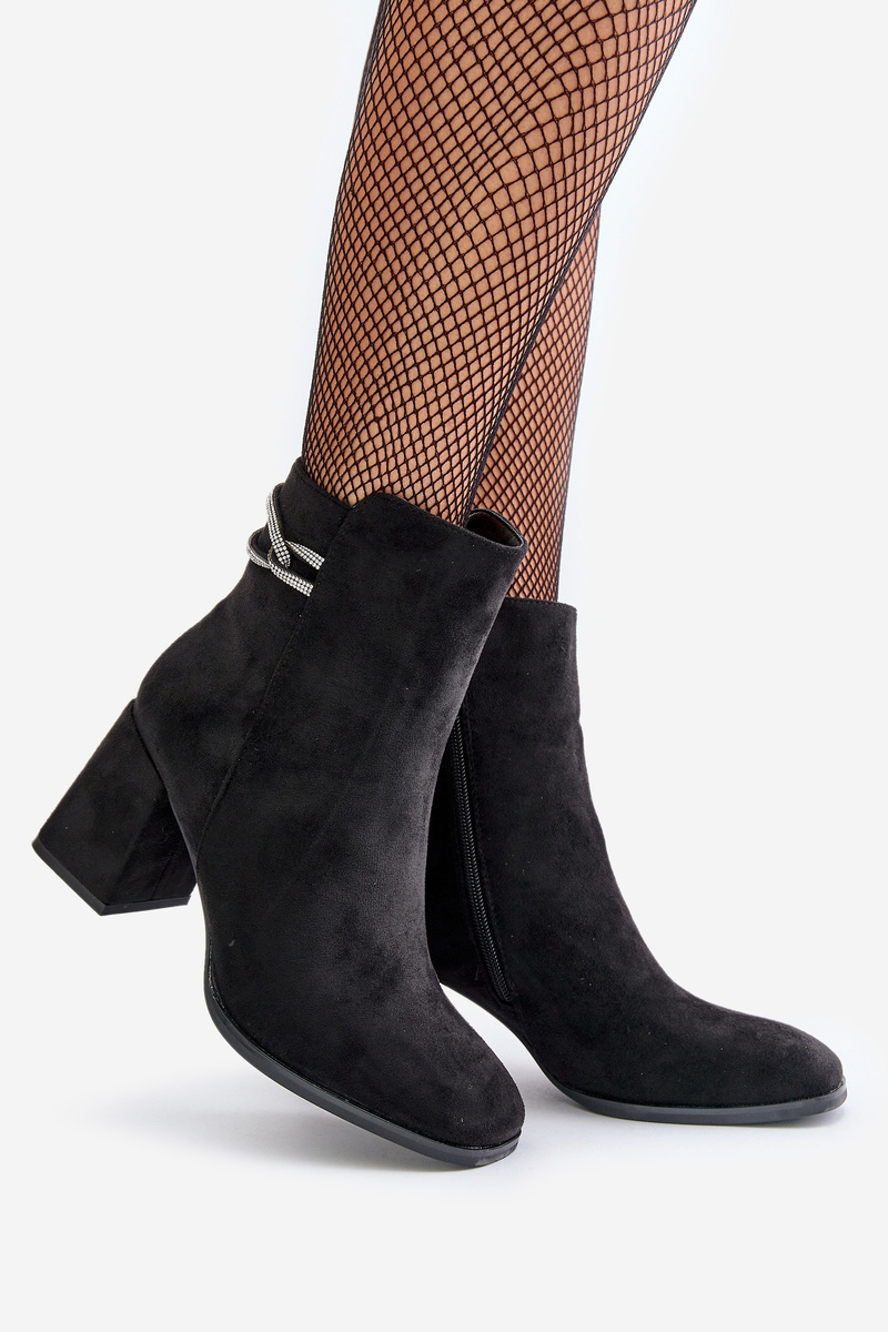 Dámské botky vyrobené z eko semiše. Usazené na podpatku ve formě stabilního sloupku. Model s vyšším svrškem, zapínací na zip. Vnitřek zateplený obuvnickou vlnou. Ideální do mnoha stylizací, např.: k šatům, sukním nebo kalhotám. Tento elegantní střih by měl být ve vaší skříni! Při výběru velikosti se řiďte tabulkou velikostí.