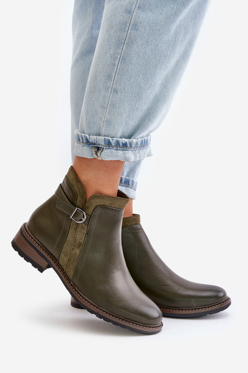 Zateplené dámské botky s nízkým svrškem na zip ekologická kůže tmavozelené Taitha