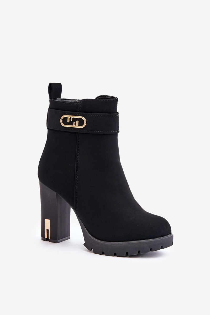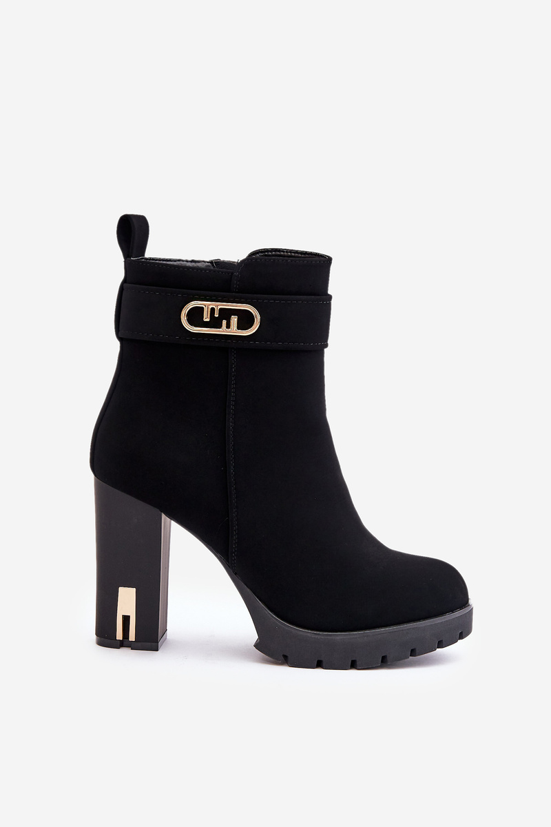 Zateplené dámské boty na podpatku na zip černé Narielis
